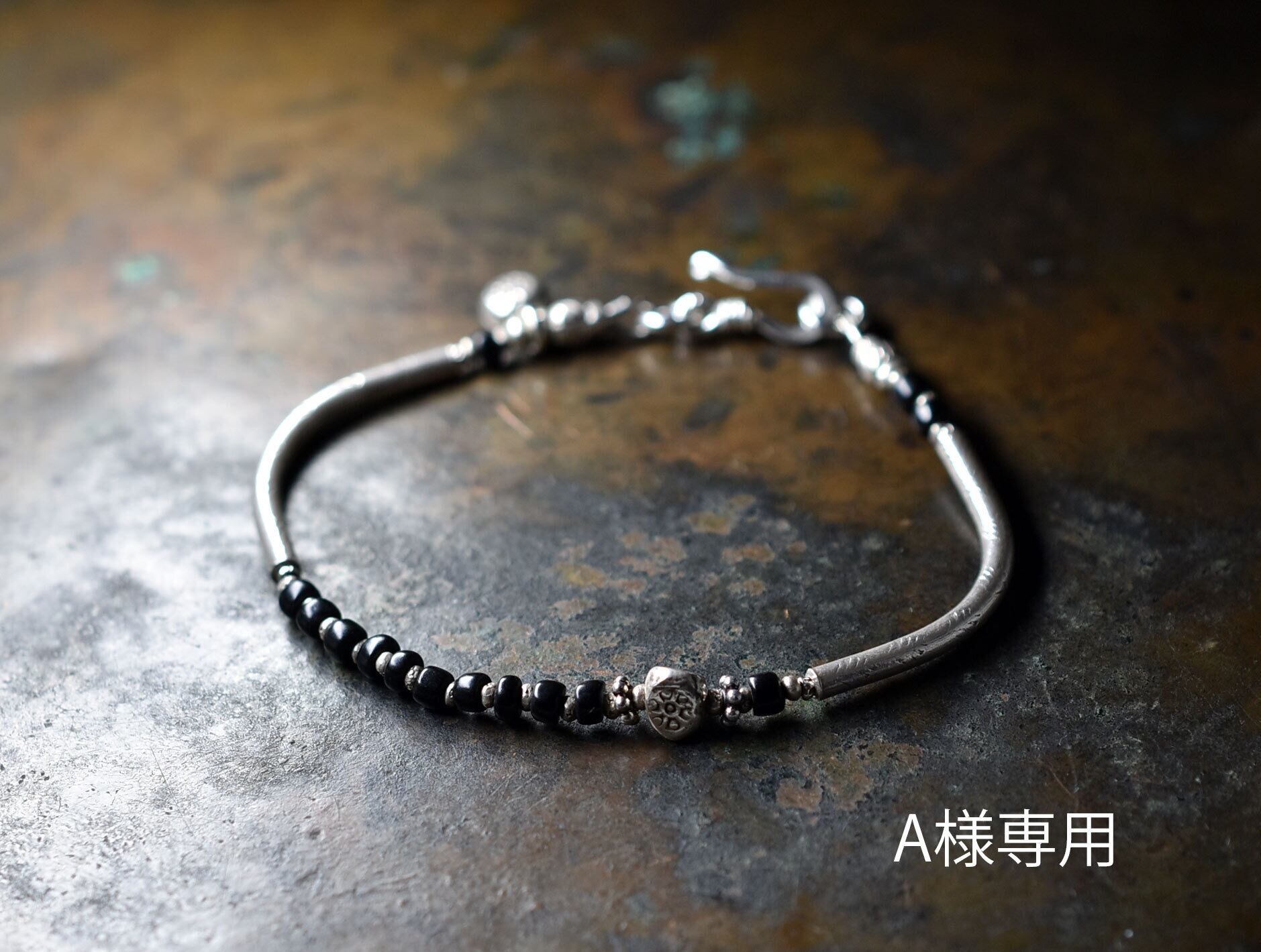 「A様専用」湾曲カレンシルバーとヴェネチア漆黒ビーズの華奢なブレス