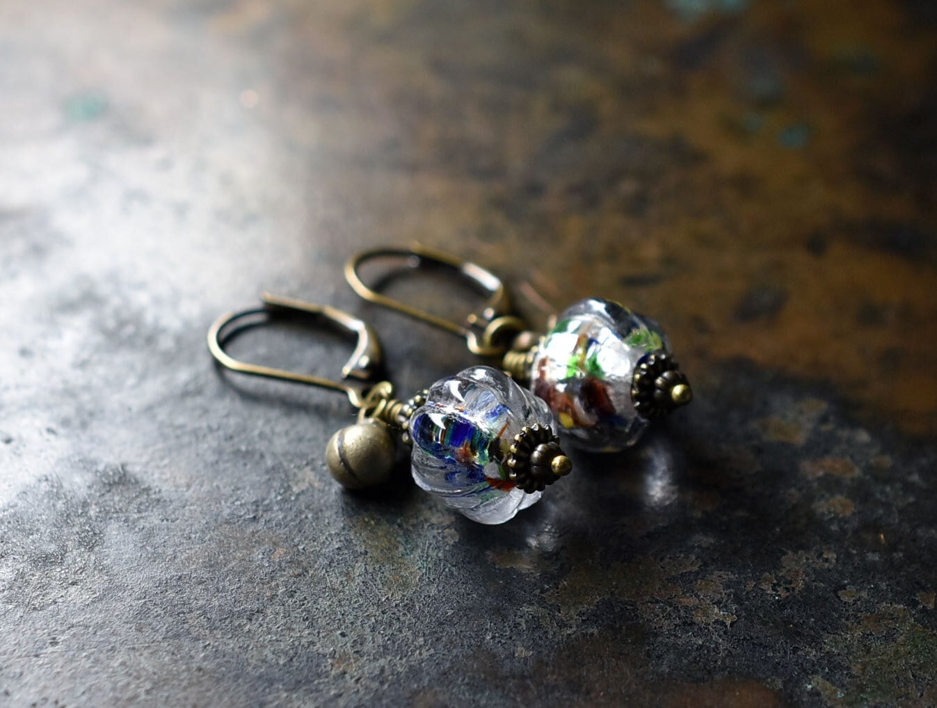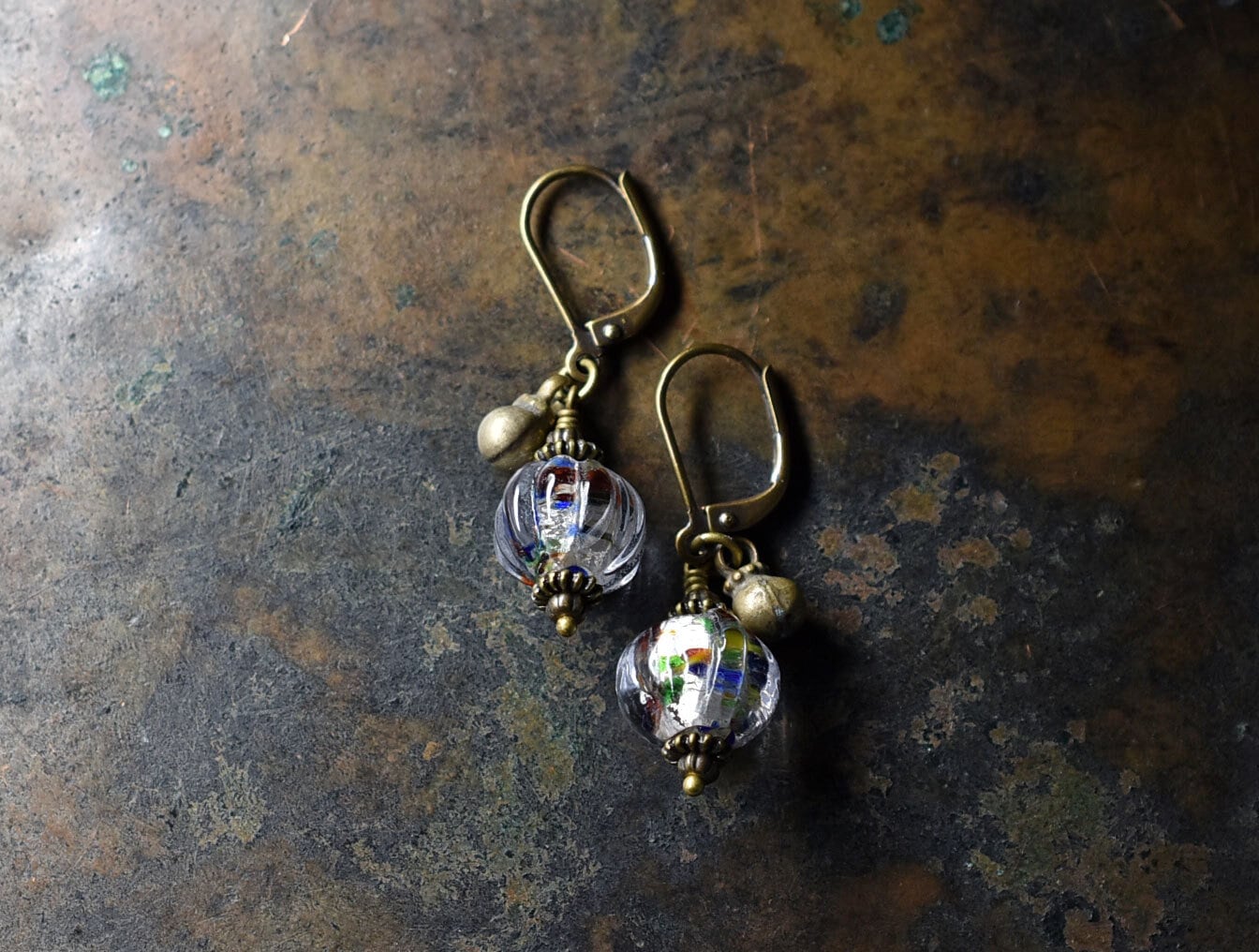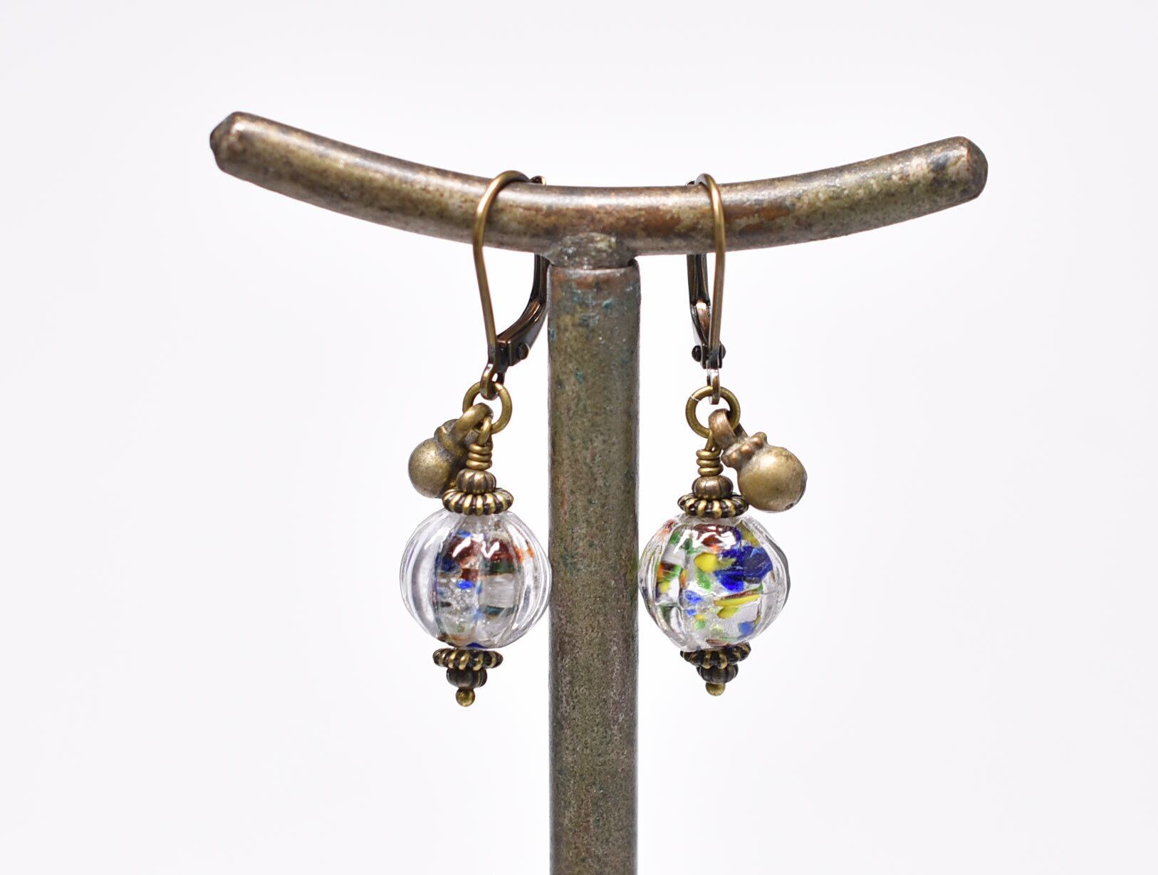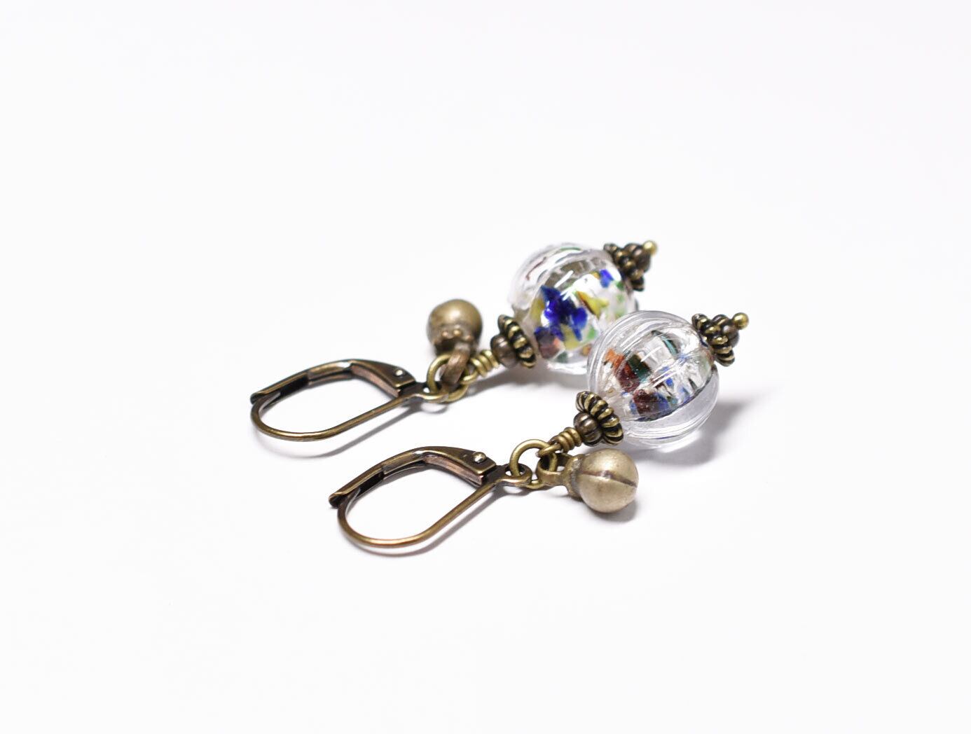 蜜柑型インド再生ガラスと民族鈴のピアス