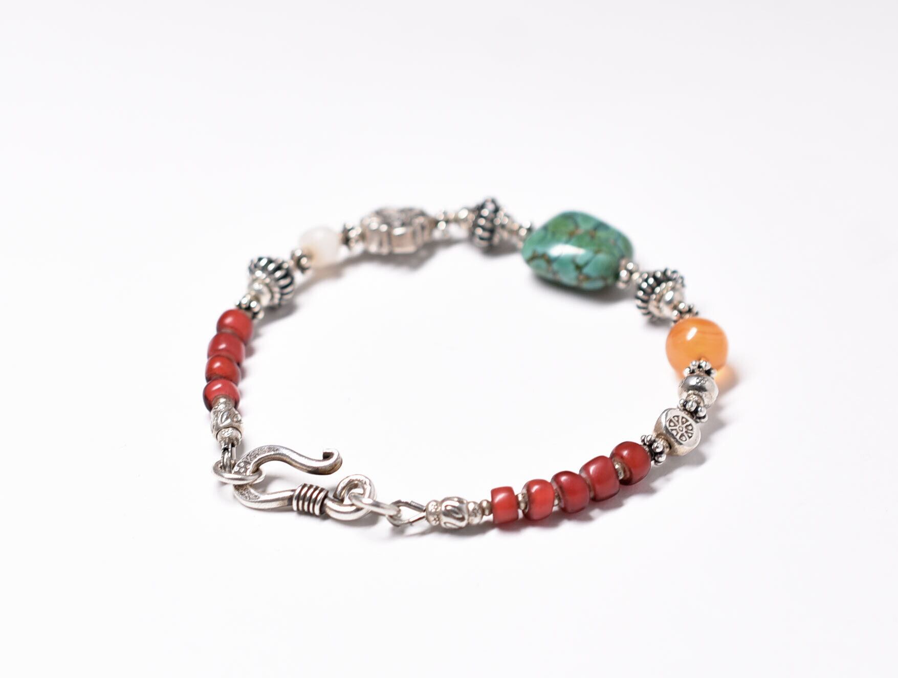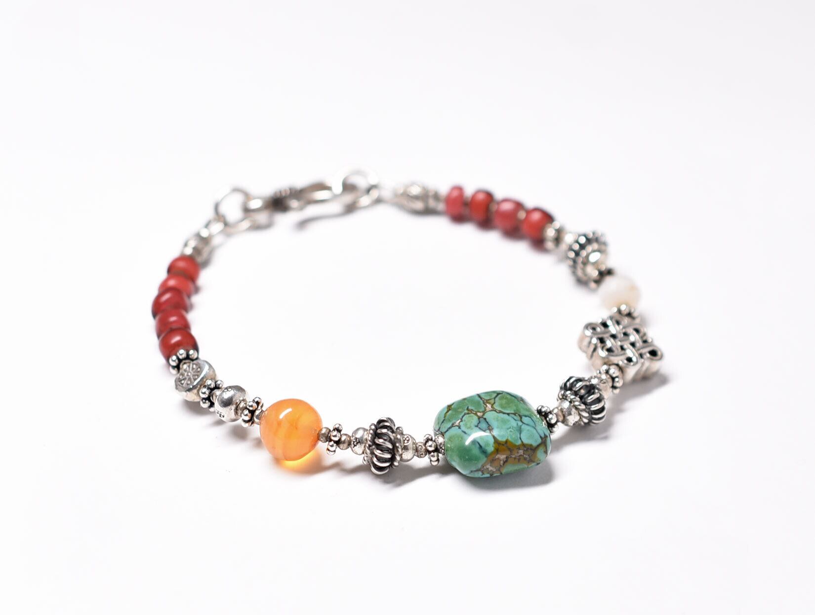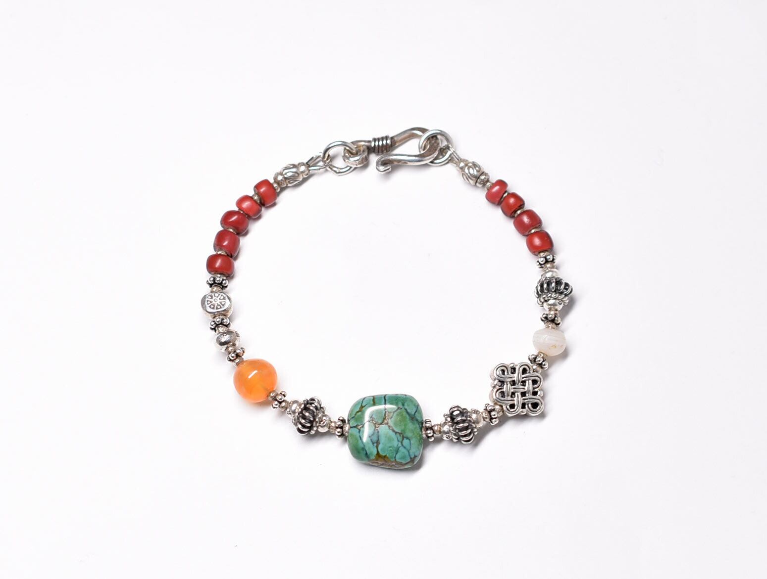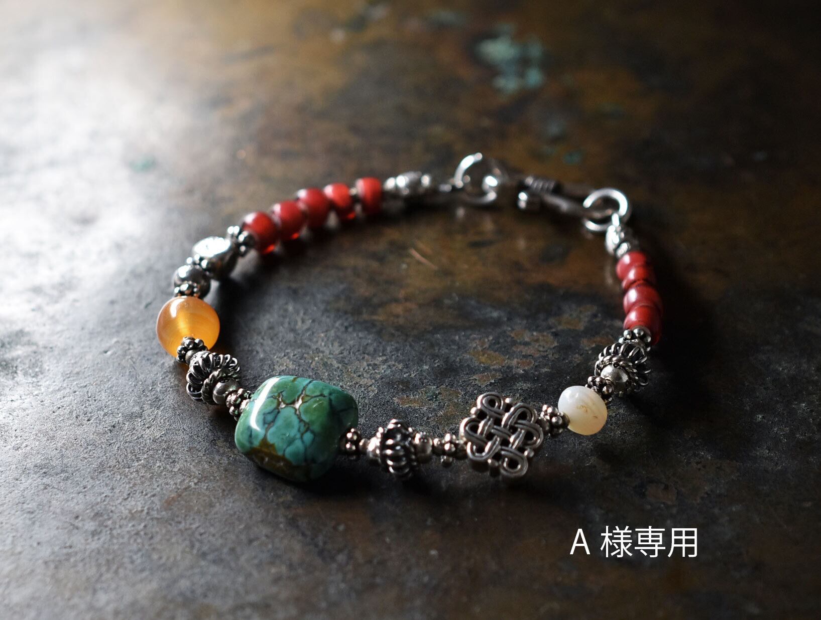 「A様専用」dチベタンターコイズとエンドレスノット、古代カーネリアンと古代瑪瑙、金赤ホワイトハーツ、カレンシルバーのブレス(アレンジ)