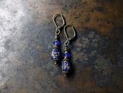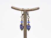 アンティーク瑠璃色トレイルデコレーションの金箔装飾ビーズのピアスです。