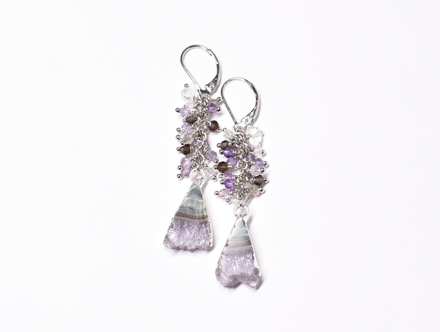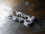 ドゥルジーアメジストとたわわなストーンビーズ、ハーキマーダイヤモンドのピアス