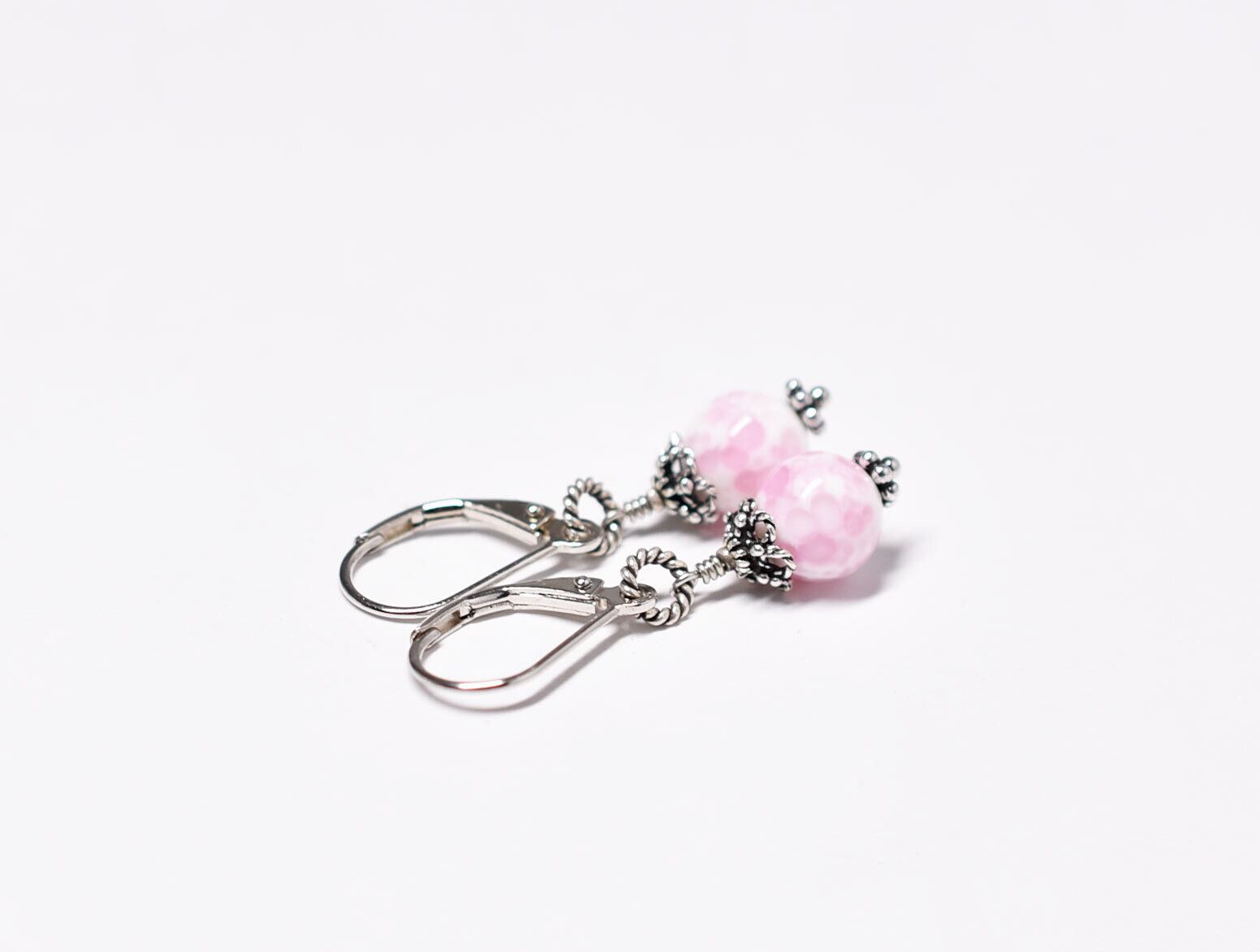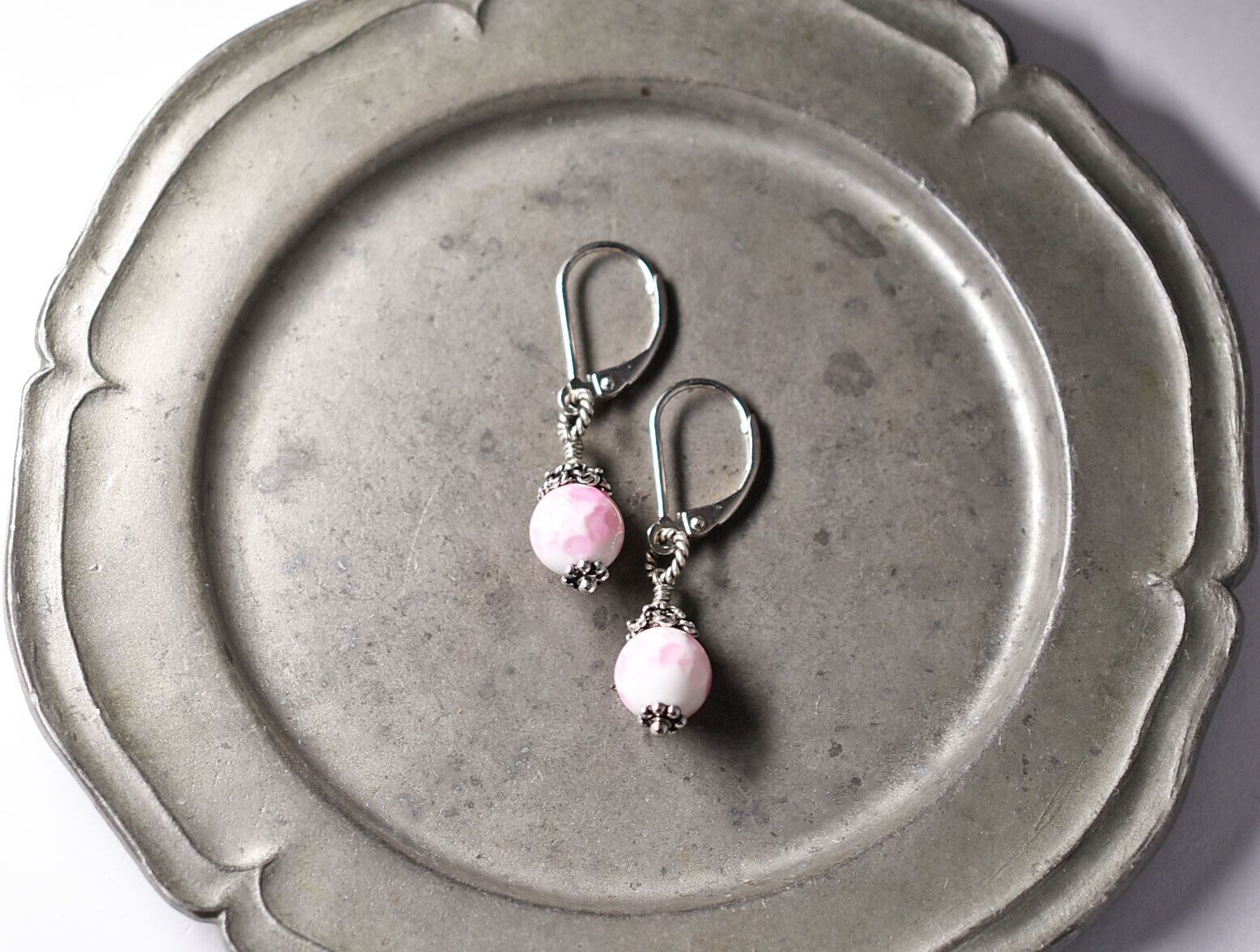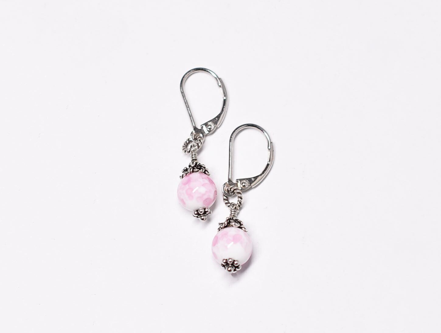 桜吹雪模様のjapanヴィンテージビーズを繋いだ小さなピアスです。