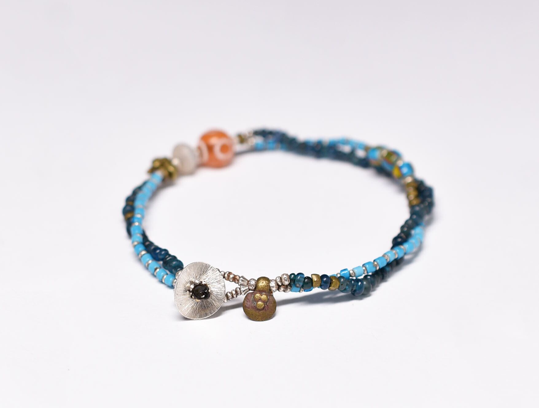 小さめなビーズばかりなのに、存在感があるブレスです。