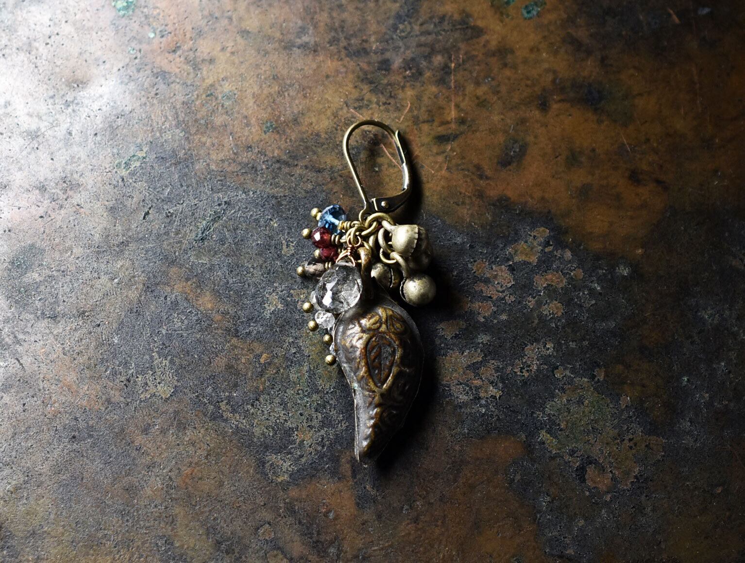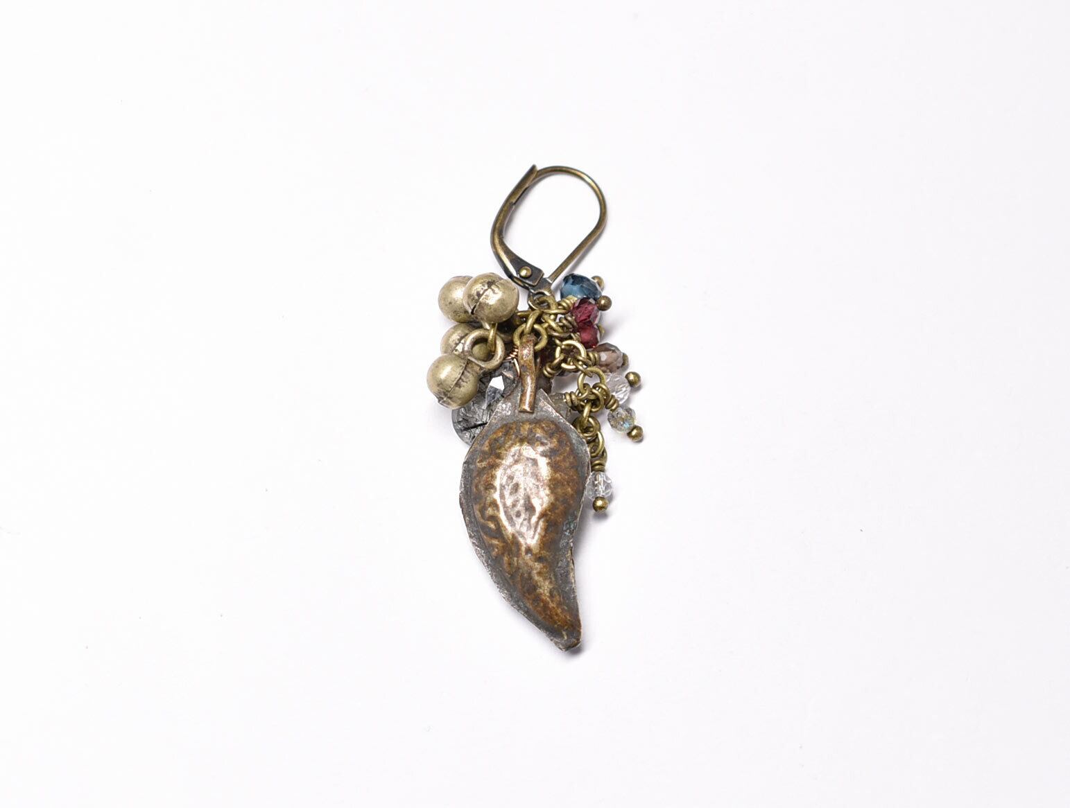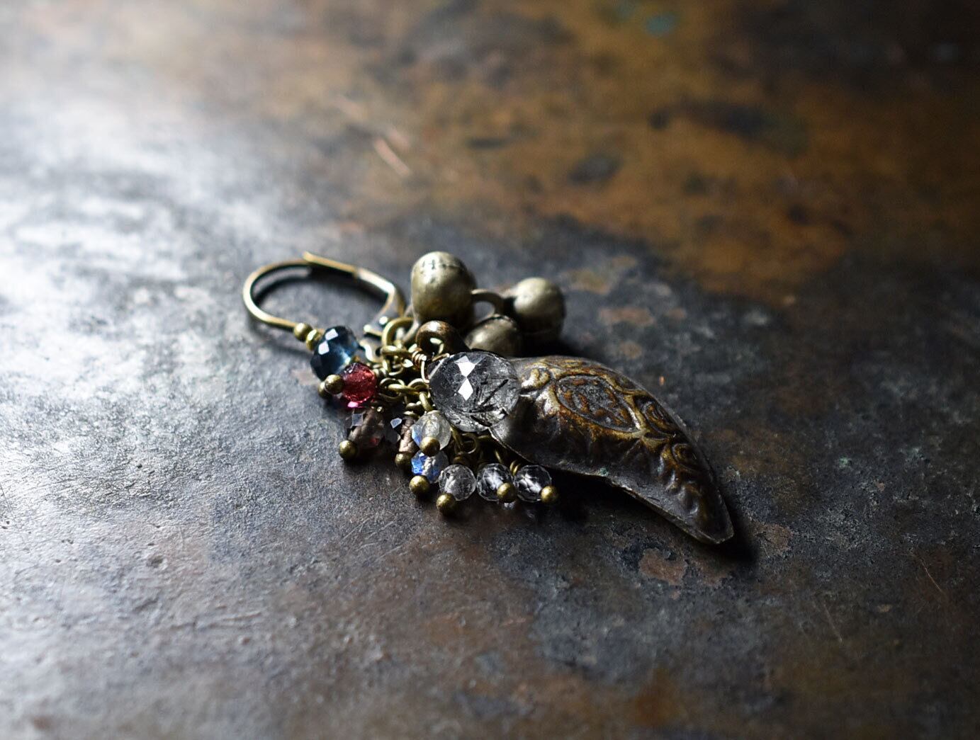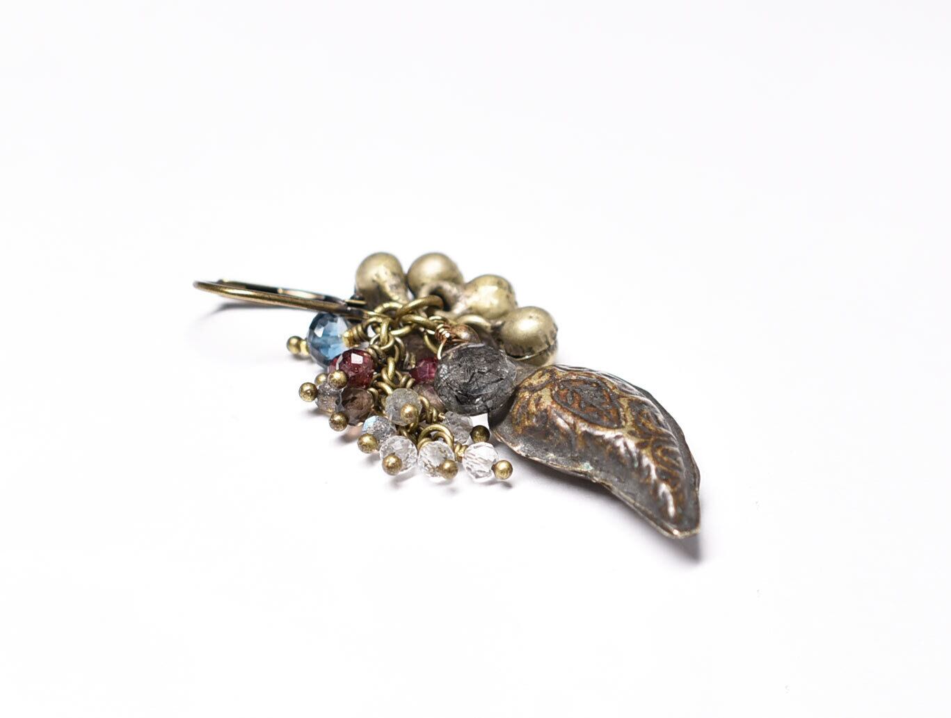 古いメタルと天然石の美しさが調和した片耳のピアスです。
