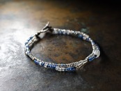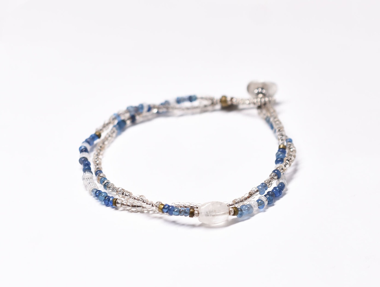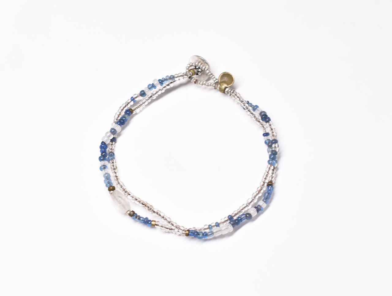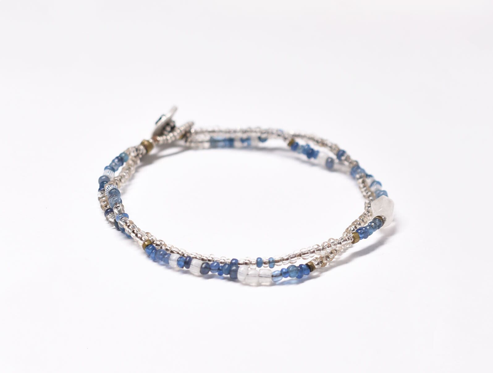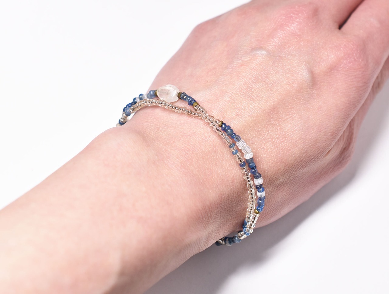 古代水晶とグーズベリー、クリア&勿忘草色シードビーズの2連ブレス