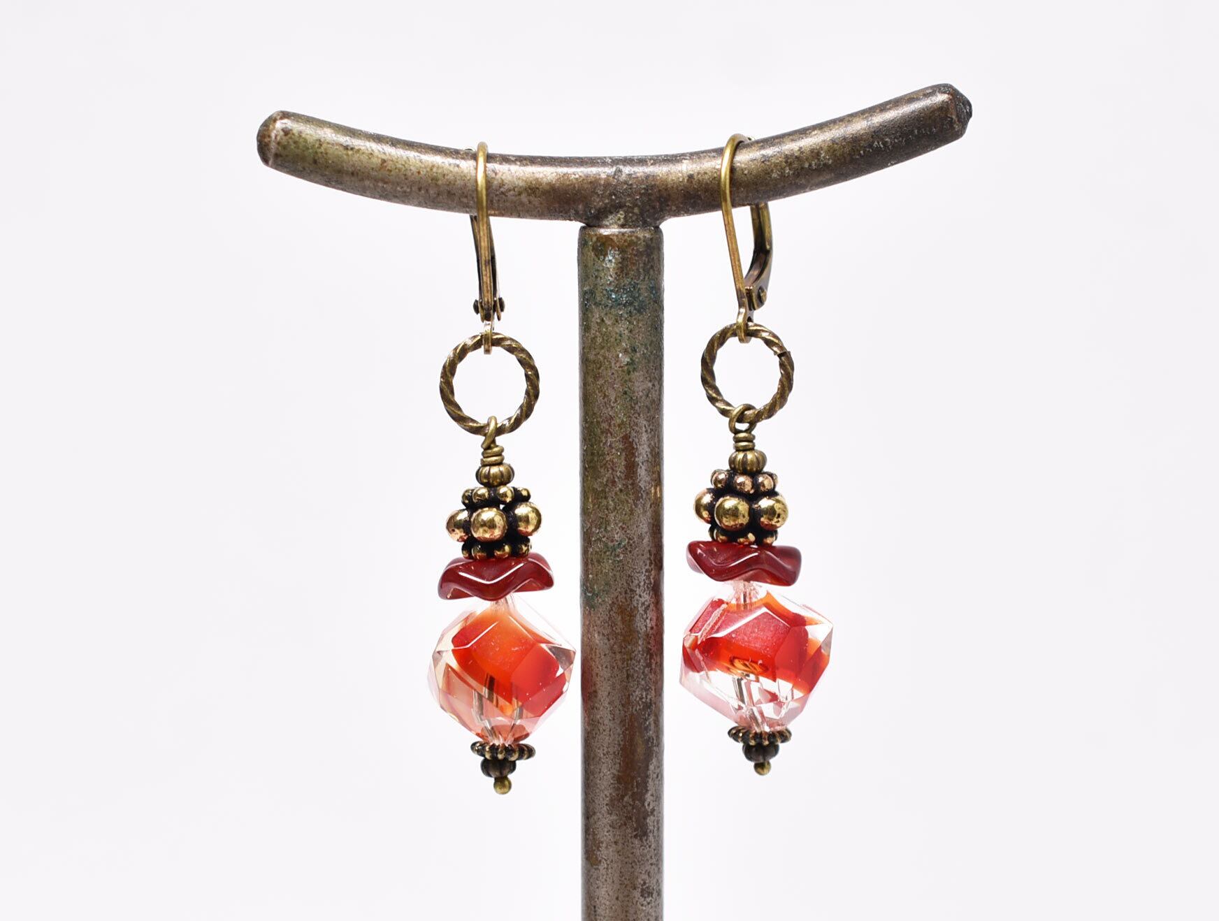 チェコビーズとjapannヴィンテージ、ブラスビーズのピアス