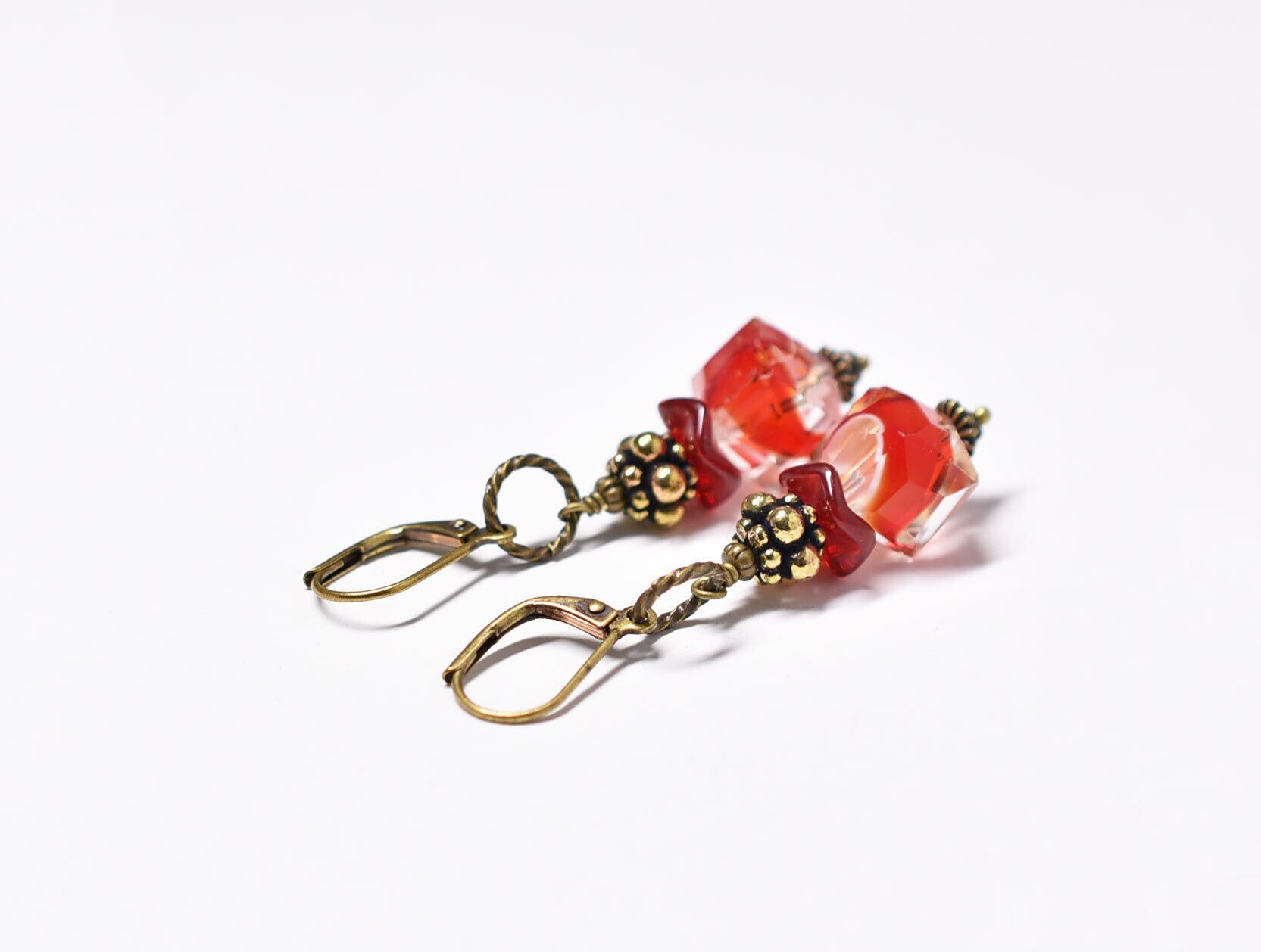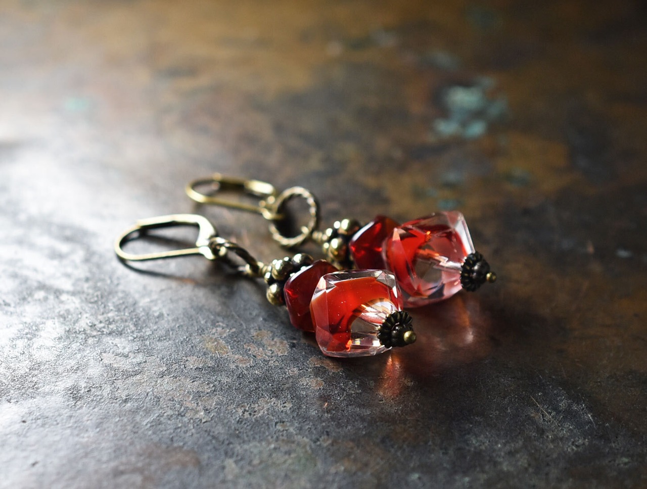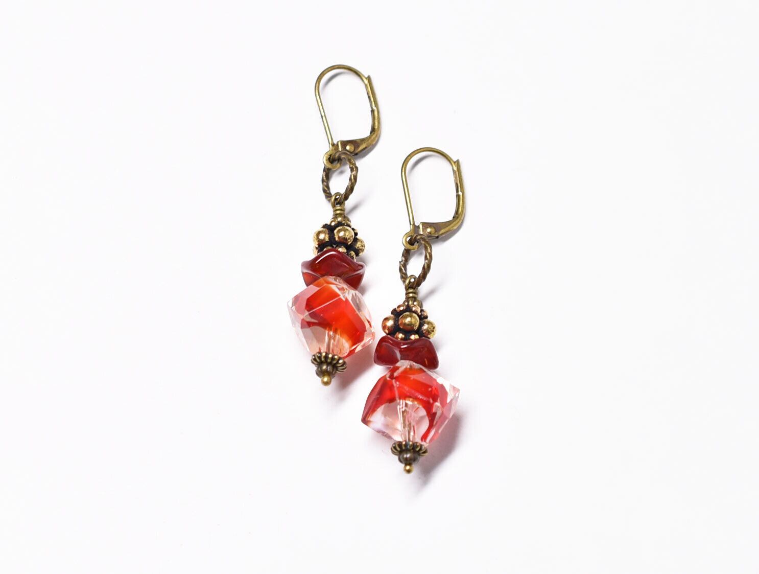チェコビーズとjapannヴィンテージ、ブラスビーズを繋いだピアスです。