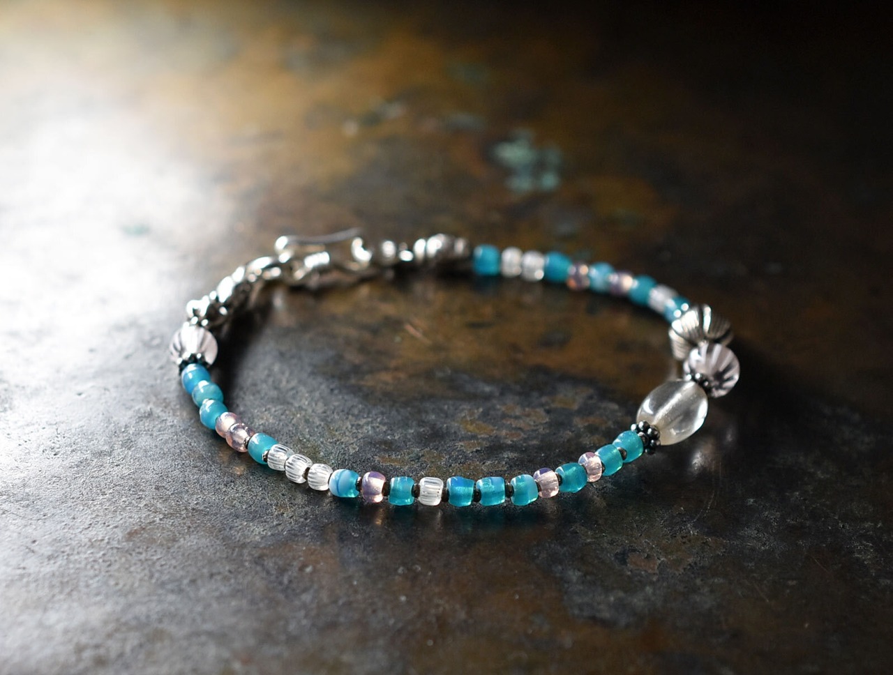 可愛らしい雰囲気に、アンティークビーズの味わいを感じられるブレスです。