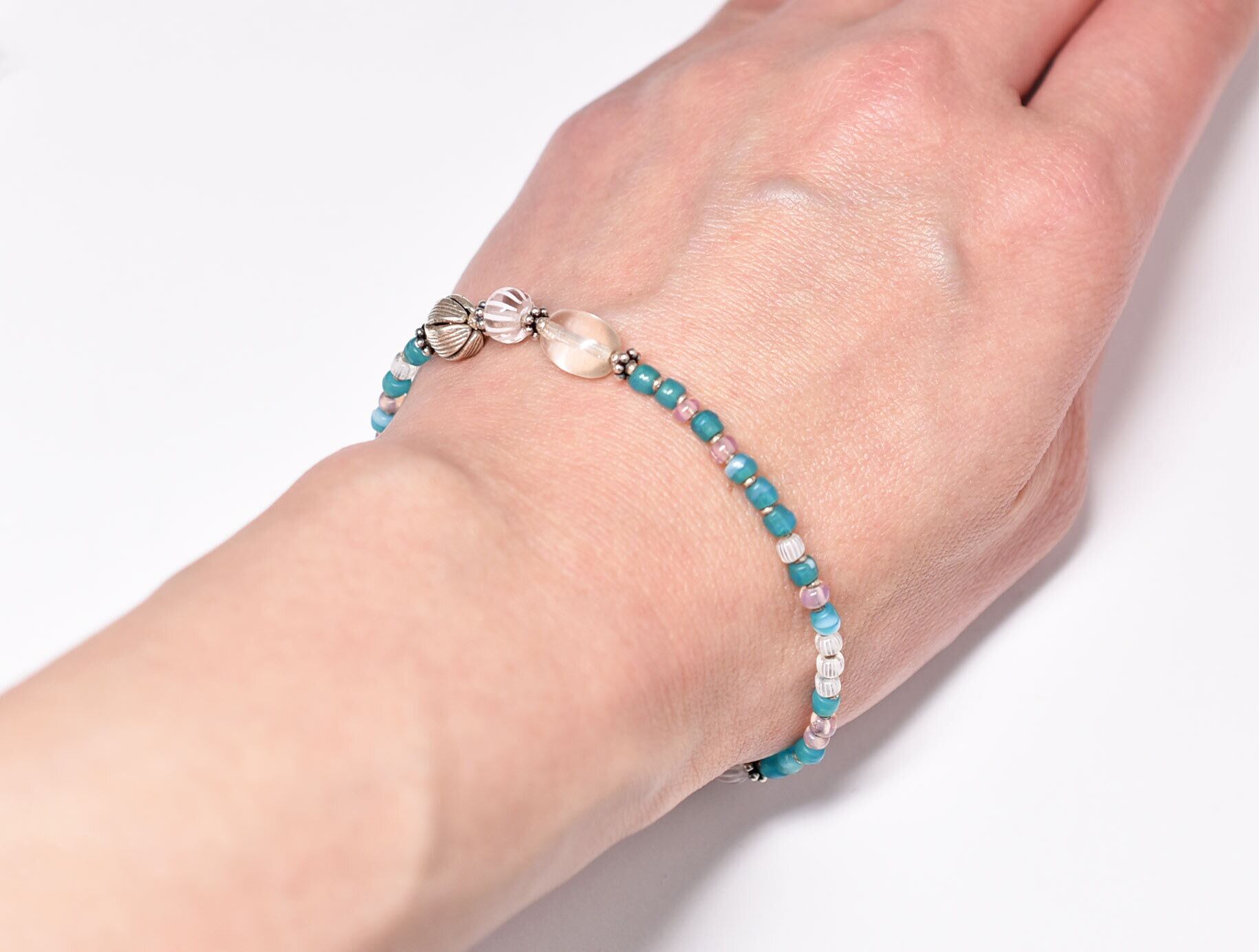 蕾や巾着、とても小さなビーズ、留め金もカレンシルバーです。