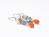 カーネリアンとたわわなストーンビーズ、白蝶貝の小花を繋いだシルバーカラーベースのピアスです。