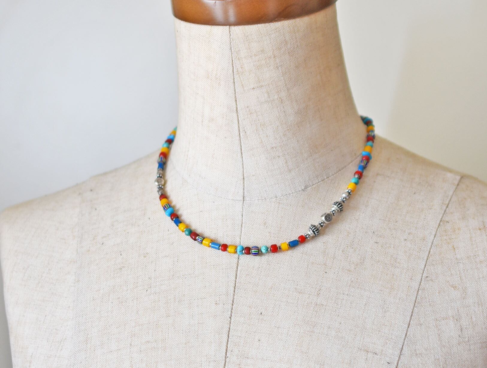 ストライプ模様のマルチカラービーズはシェブロンタイプのビーズです。こちらもヴェネチアのアンティークビーズです。