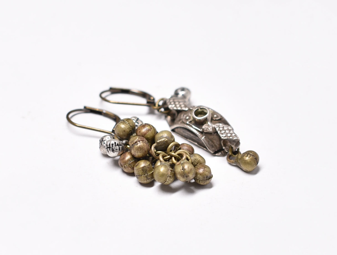 アフガンoldシルバーと民族鈴、インドシルバー鈴のアンシメトリーピアス