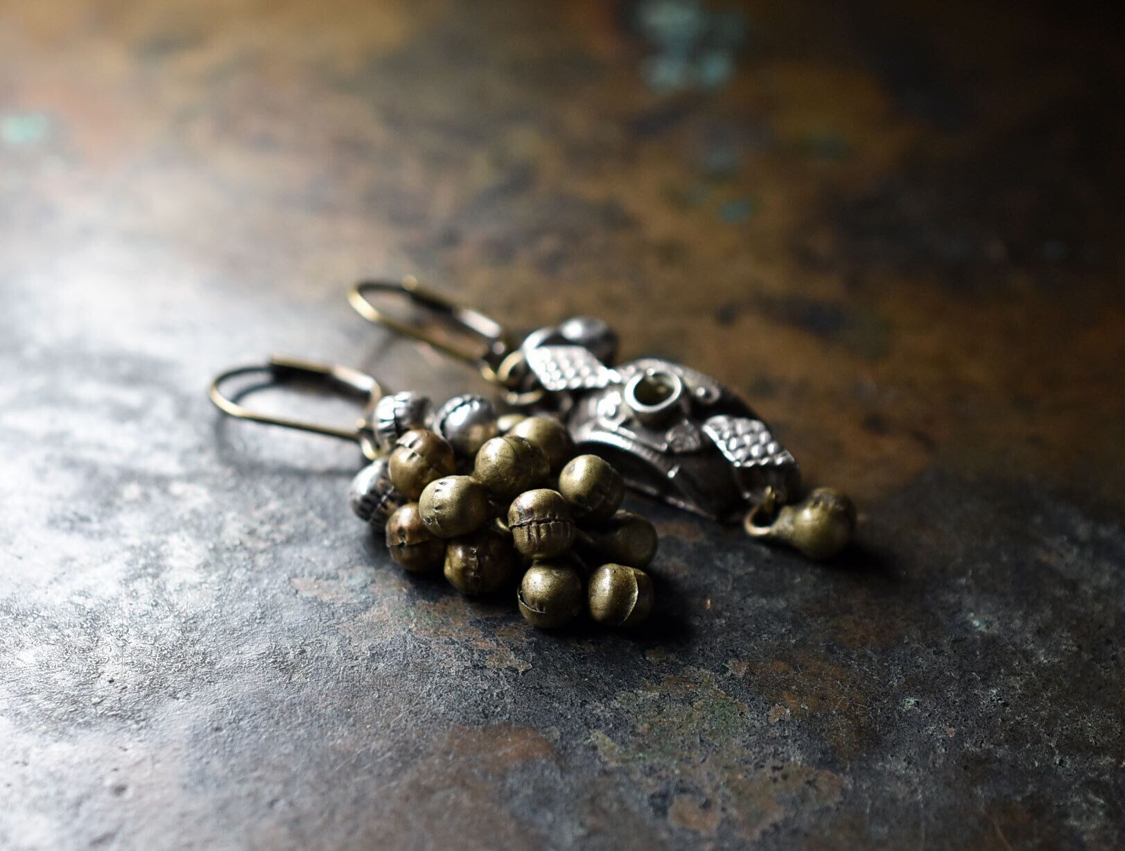 アフガンoldシルバーと民族鈴、インドシルバー鈴を繋いだアンシメトリーなピアスです。