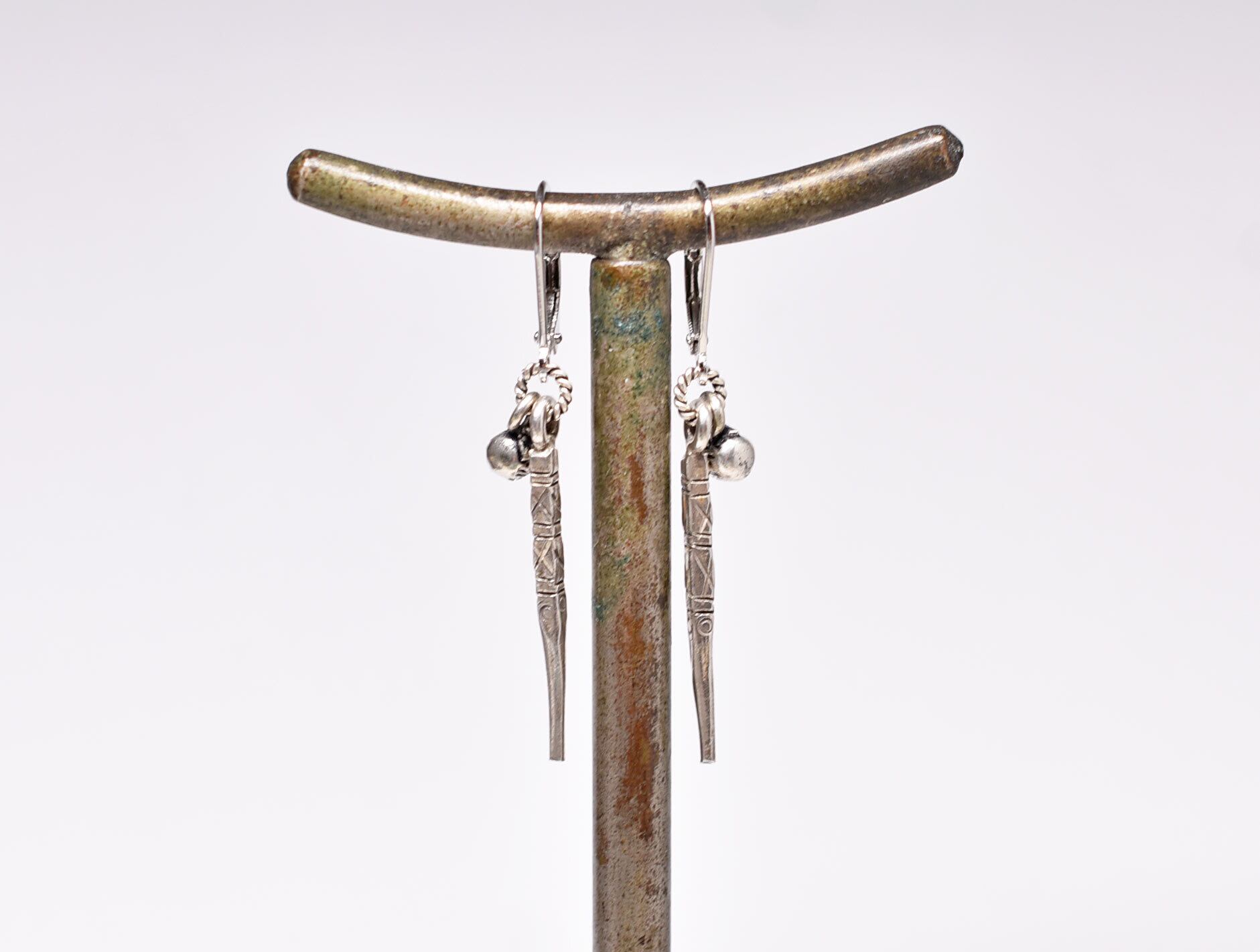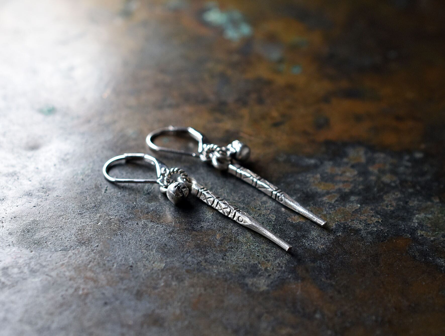 楔カレンシルバーとインドシルバーの鈴のピアス
