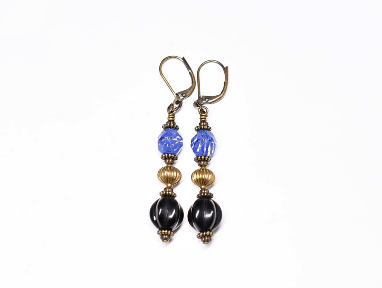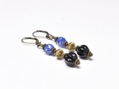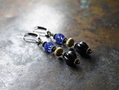 ストライプヴィンテージビーズと漆黒ビーズ、プックリブラスを繋いだピアスです。