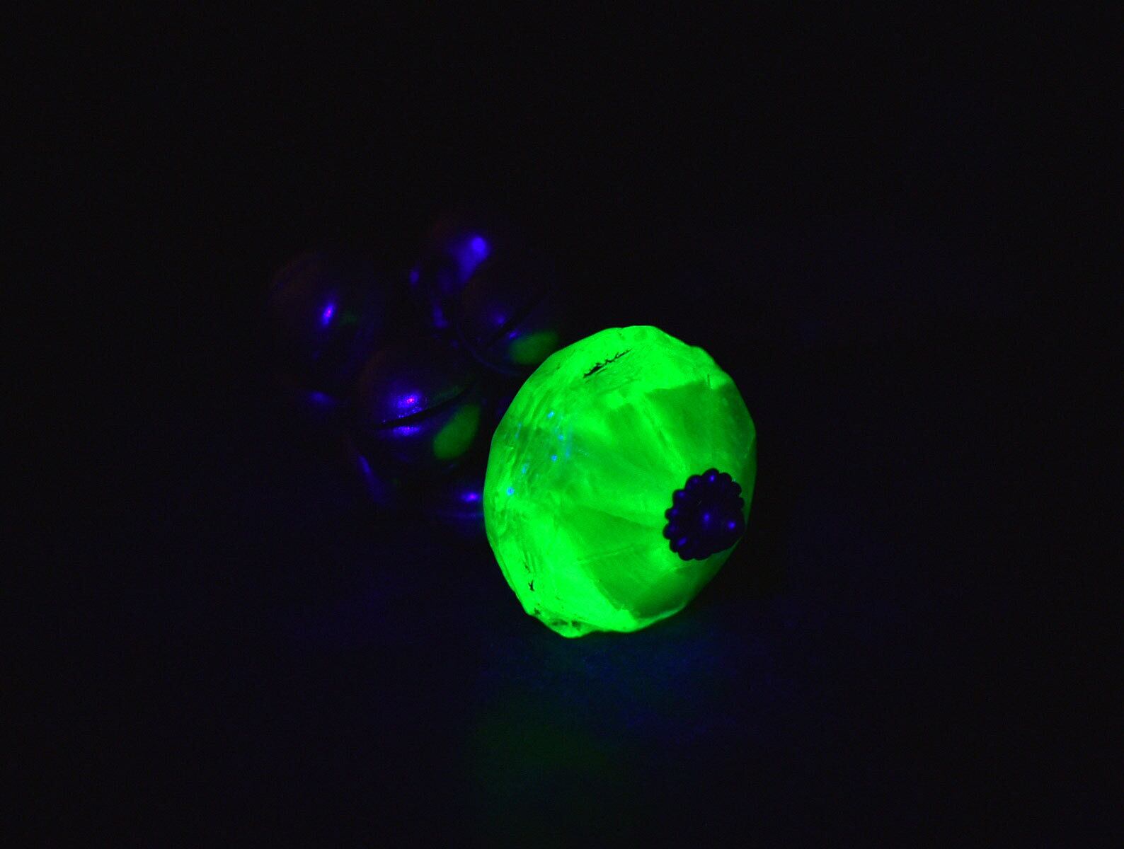 (ウランガラスの大きさ:縦1.1cm 横1.6cm)