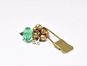 アンティークウランガラスとたわわな鈴、アフガンパーツのランドリーピンブローチ