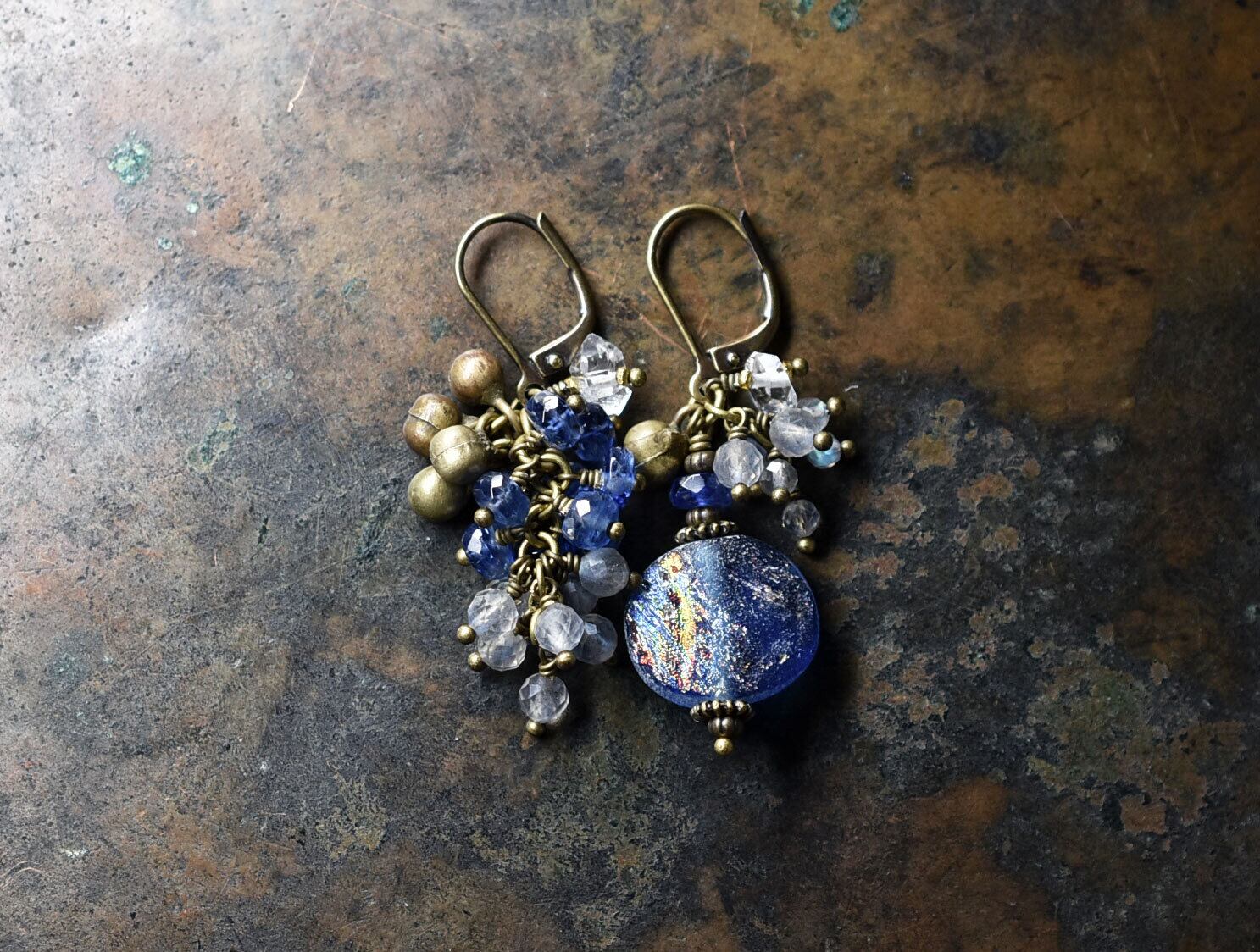 素材:ガラス、真鍮、ミックスメタル、カイヤナイト。ラブラドライト、ハーキマーダイヤモンド、カレンシルバー