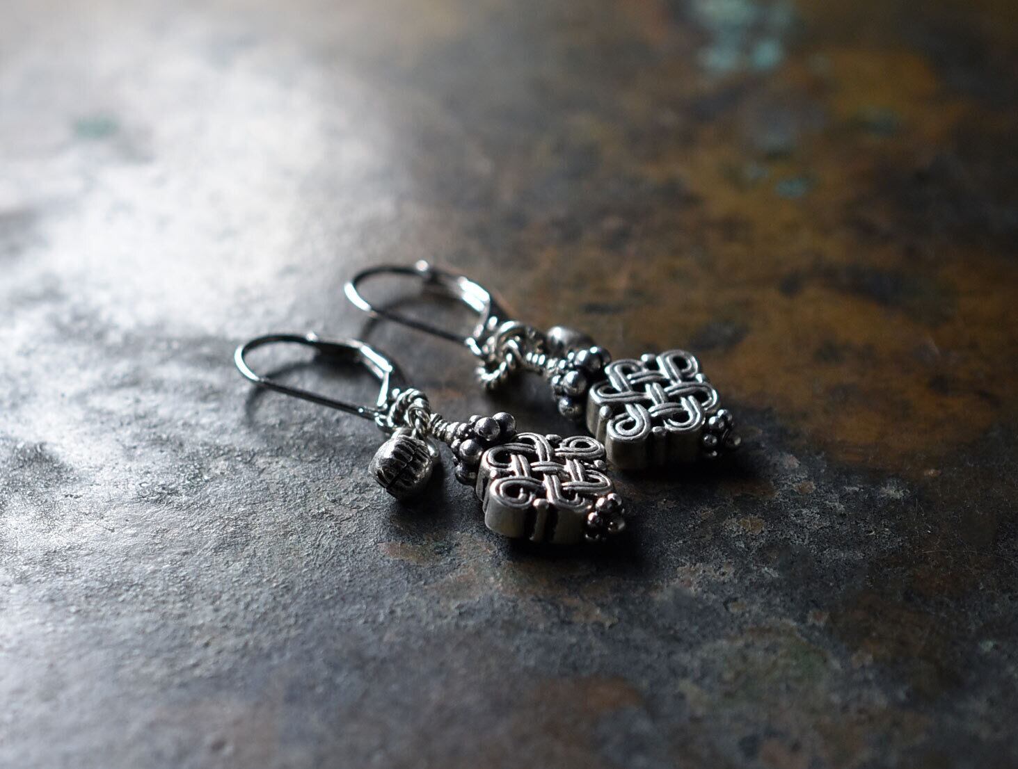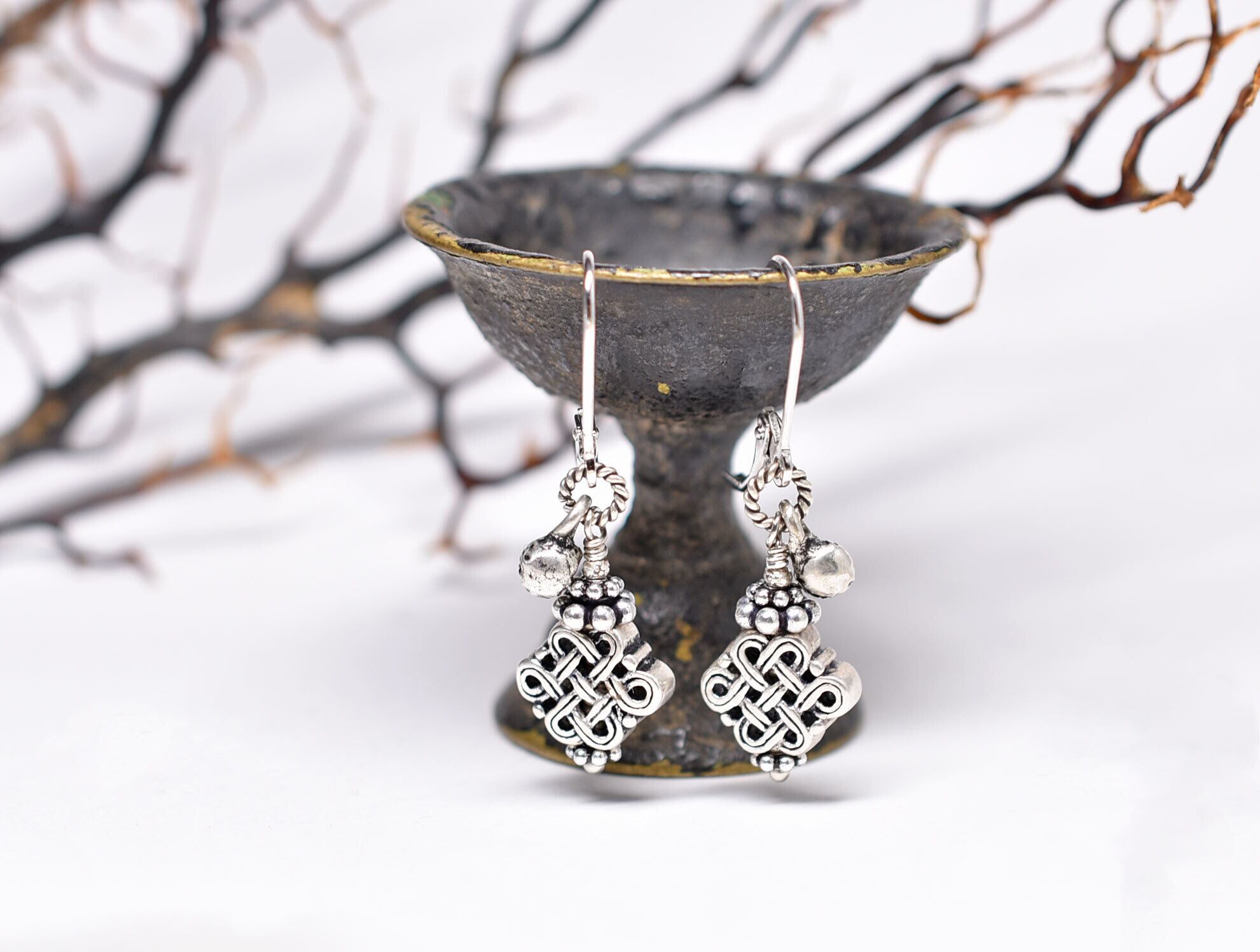 エンドレスノットとインドシルバーの小さな鈴のピアスのピアス