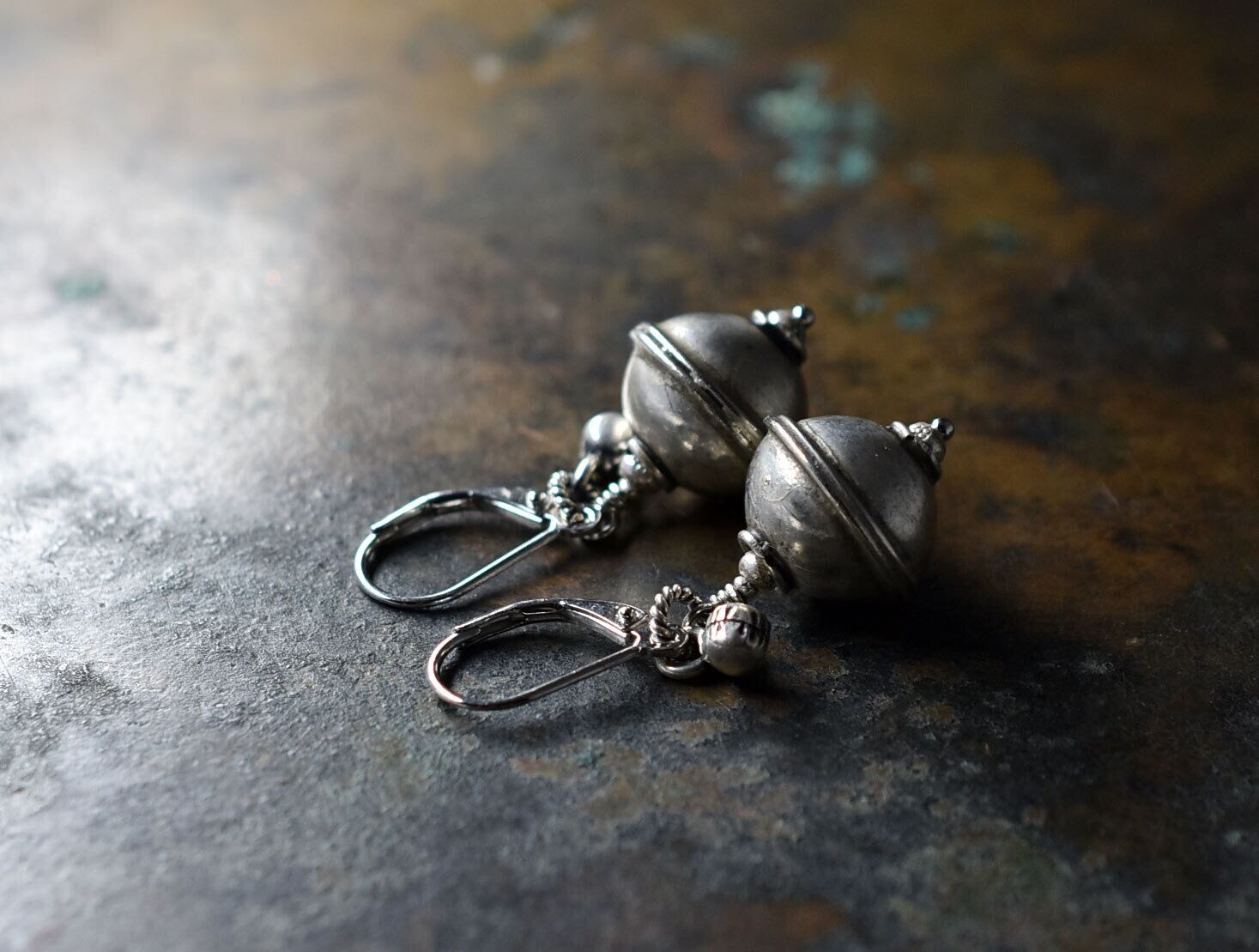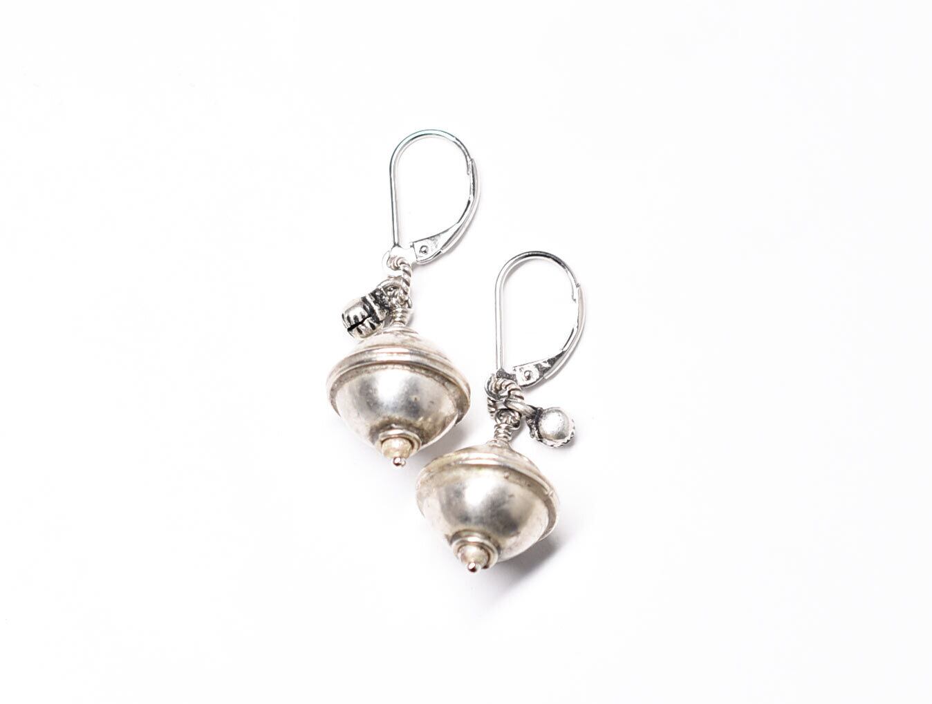 ベルベル族メタルパーツとインドシルバーの小さな鈴のピアス