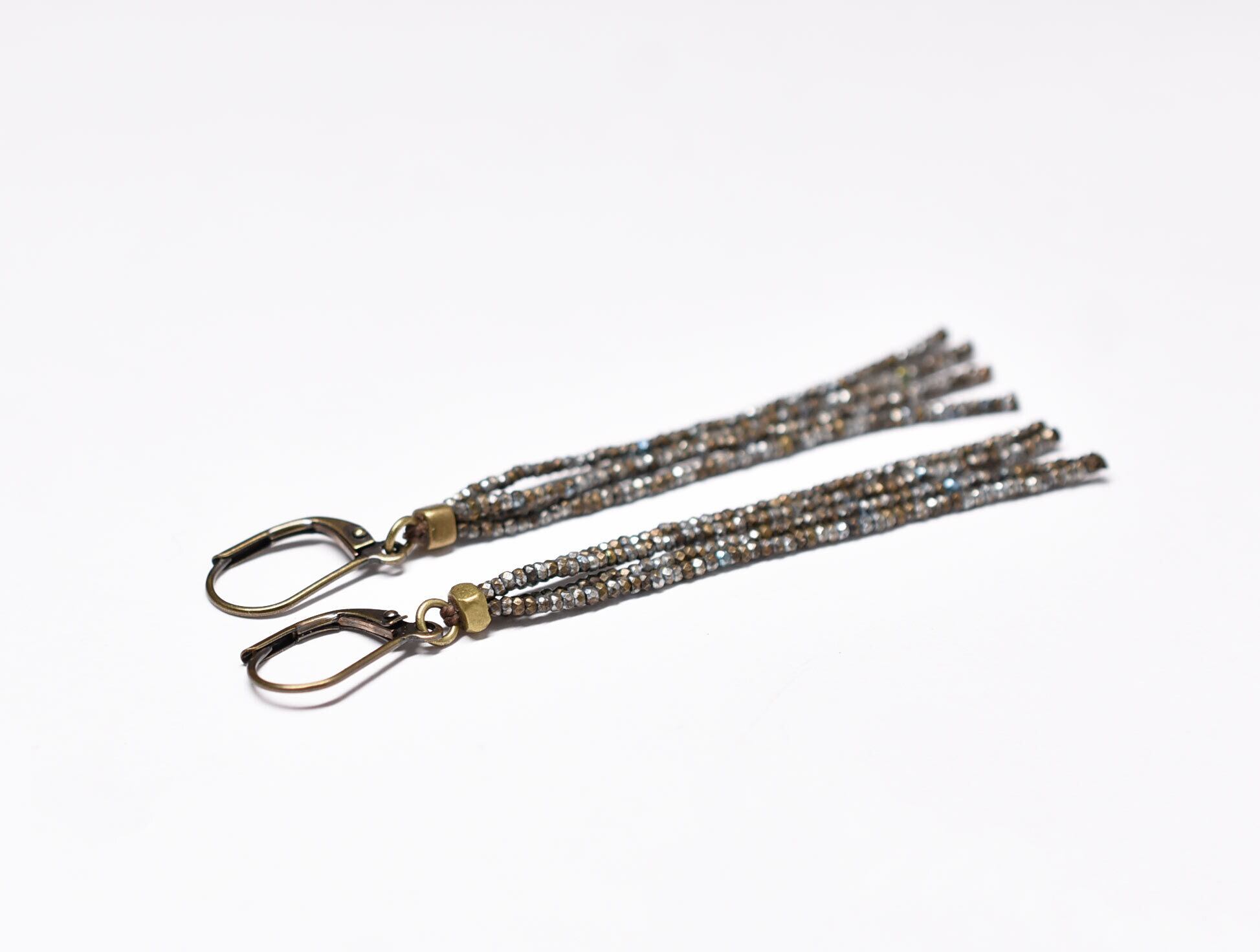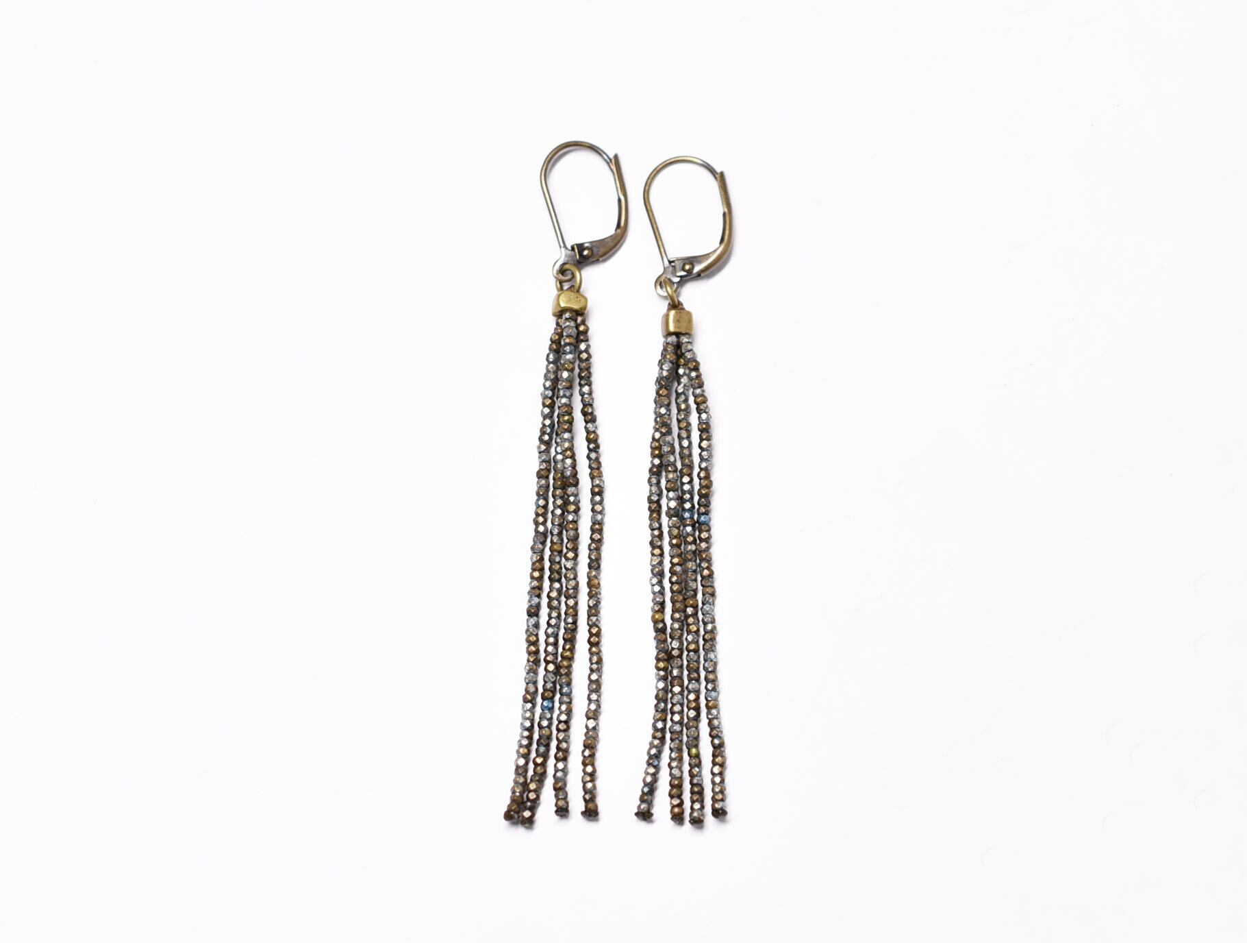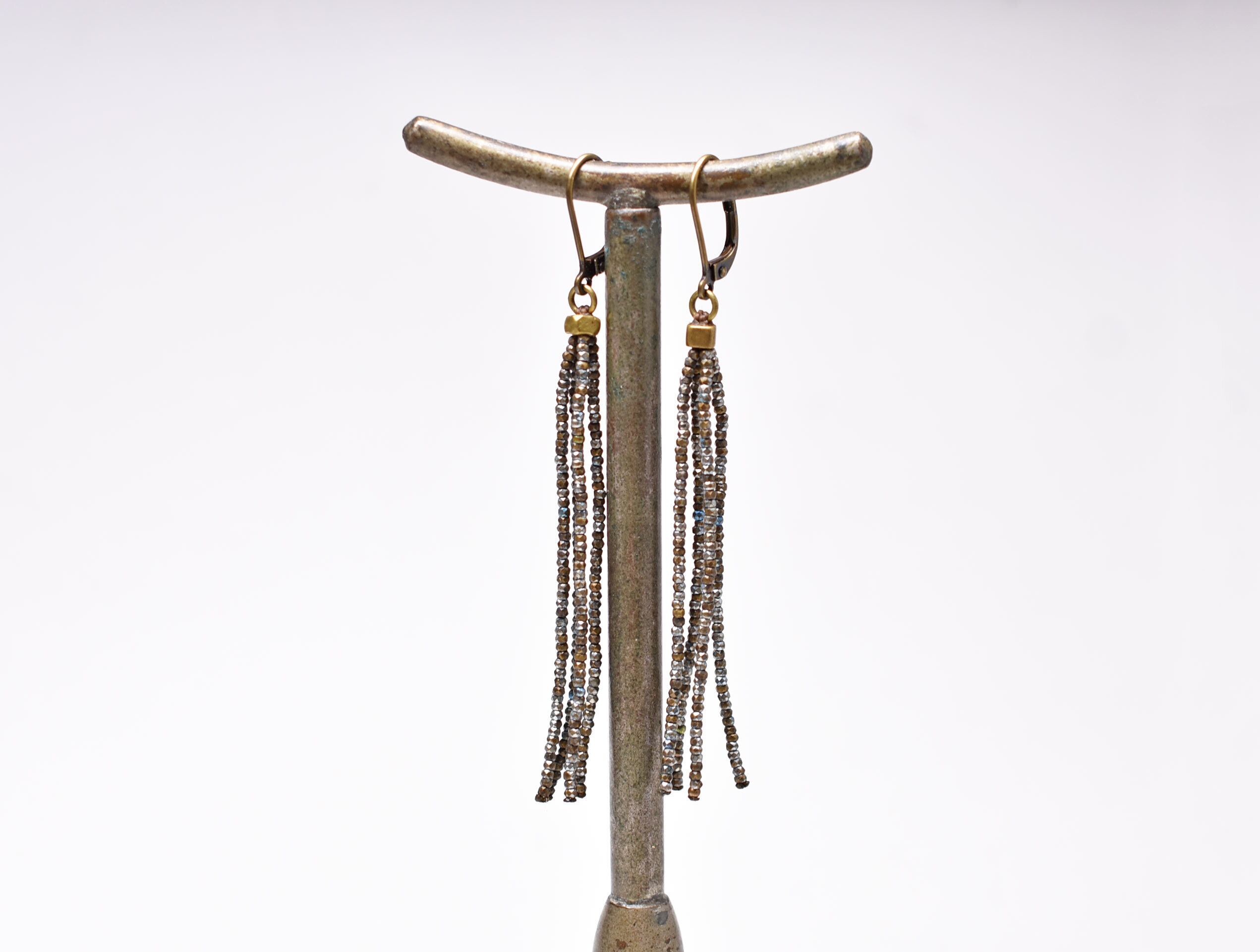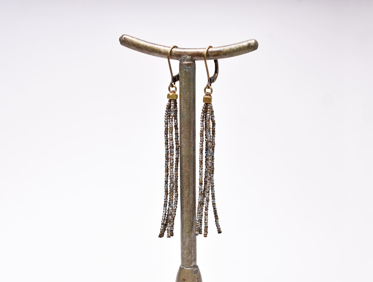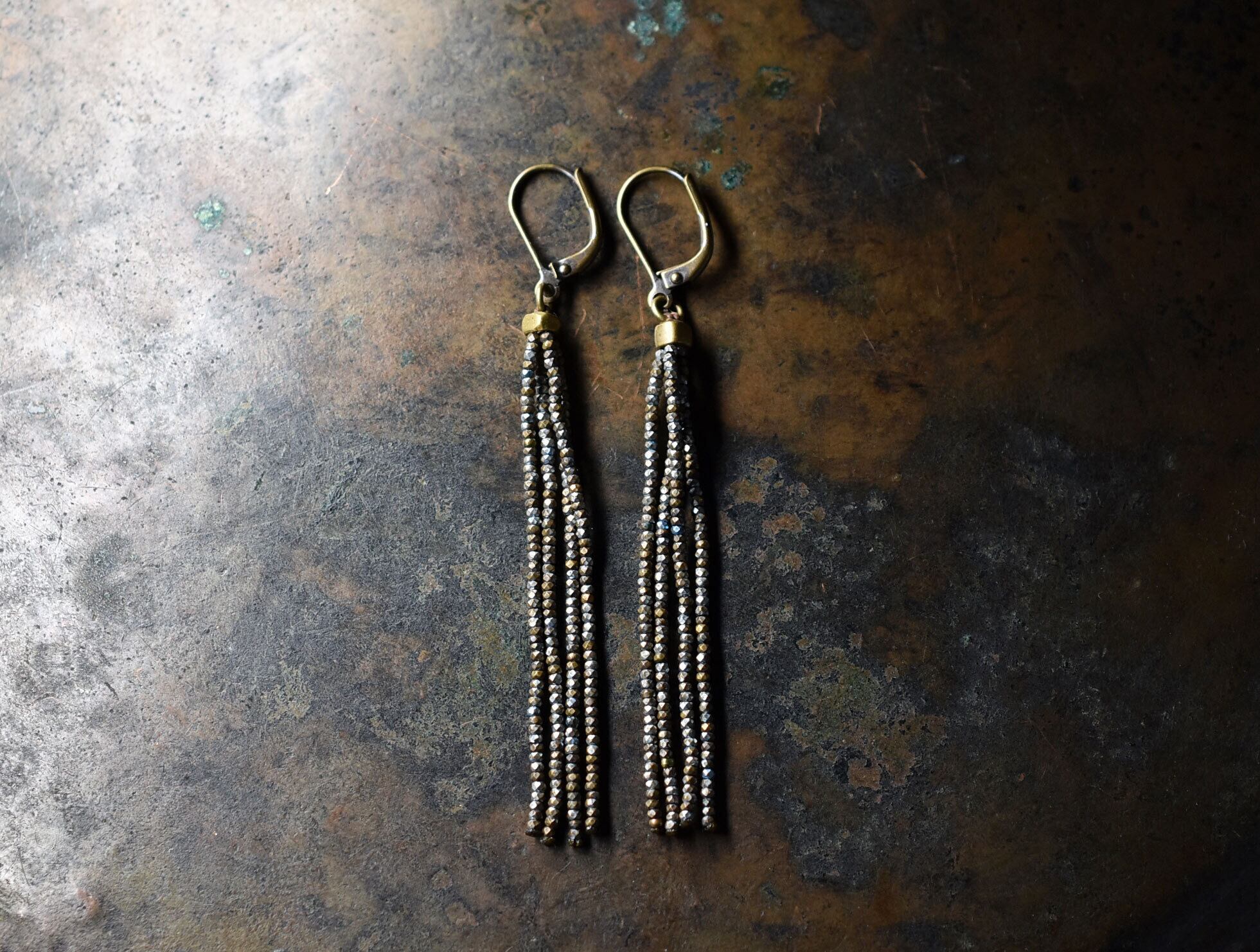 フランスアンティークカットメタルビーズを繋いだ4連のピアスです。