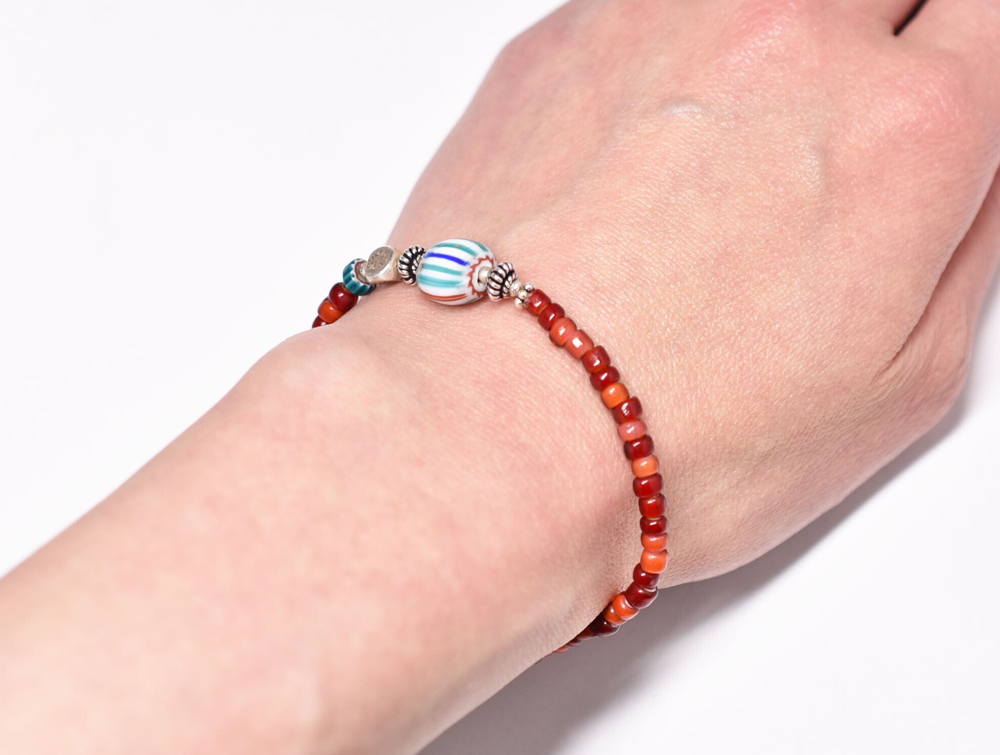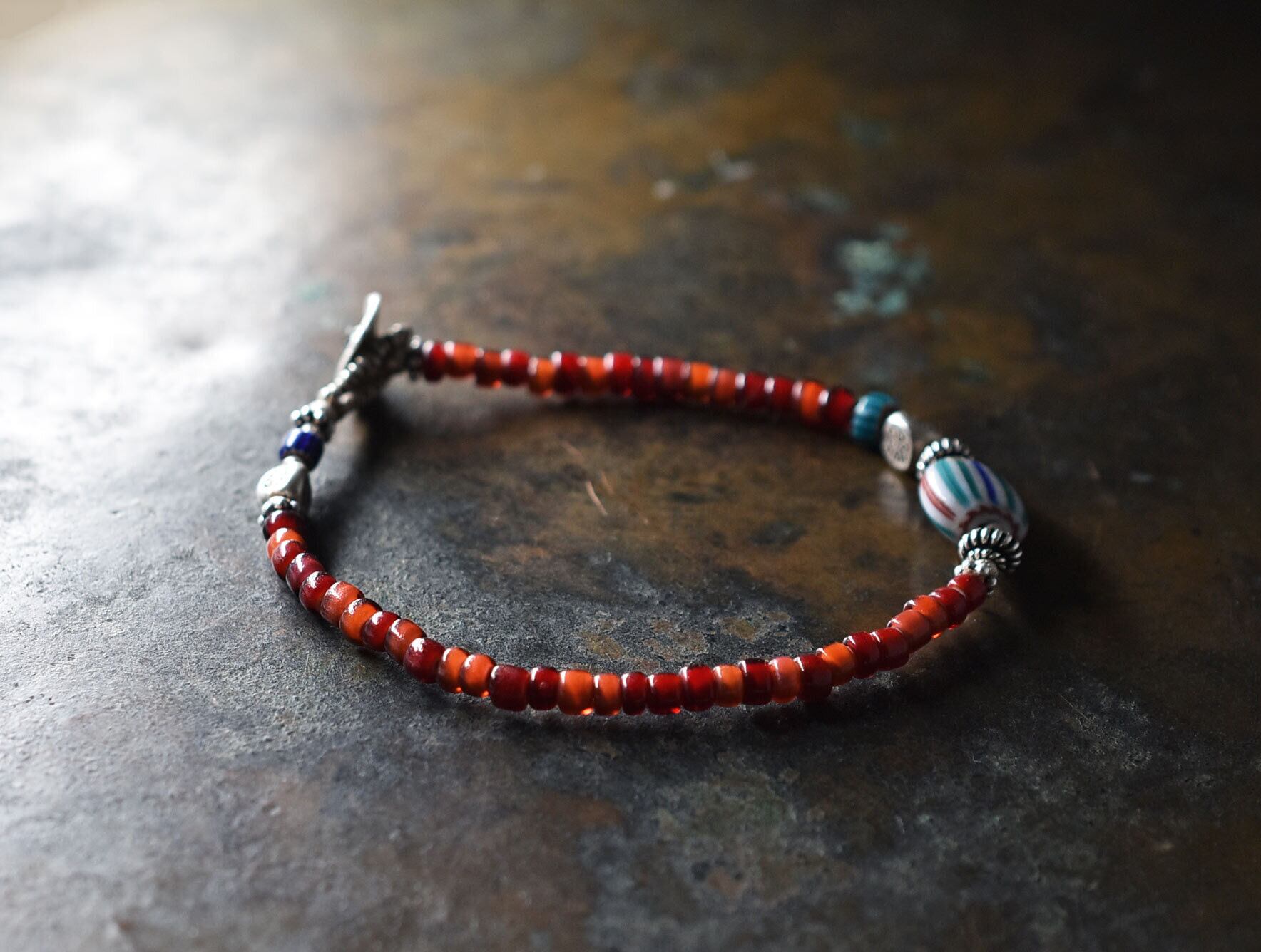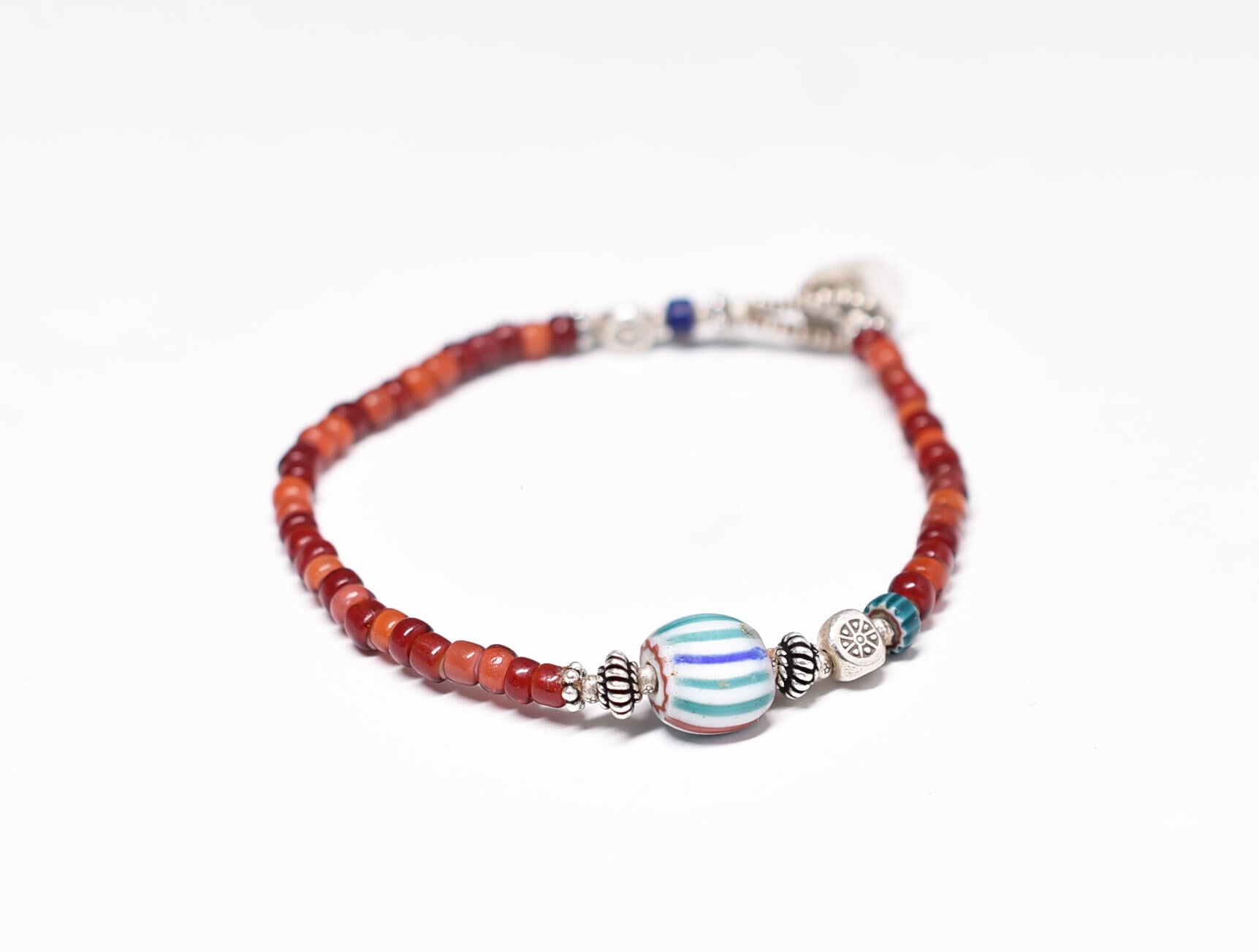 赤いビーズはホワイトハーツと呼ばれるベネチアのアンティークビーズです。(19~20世紀)芯部分が白いことからこう呼ばれています。