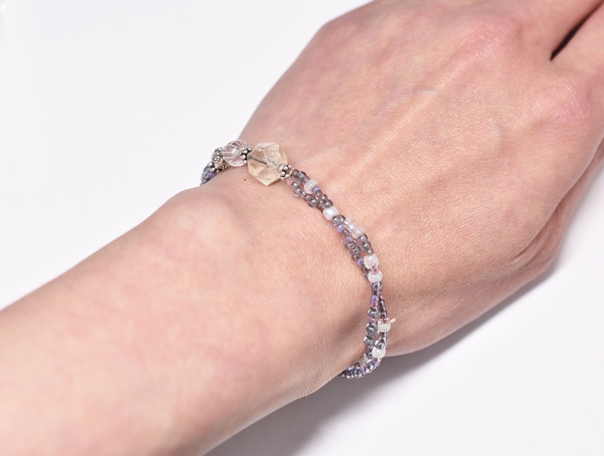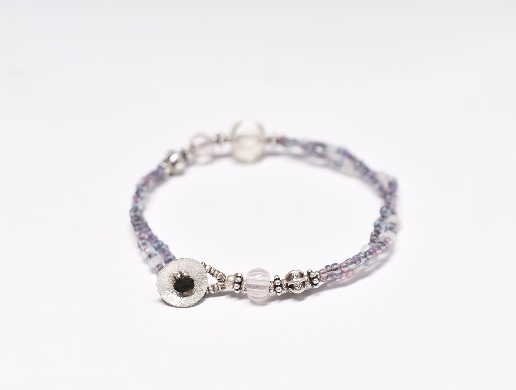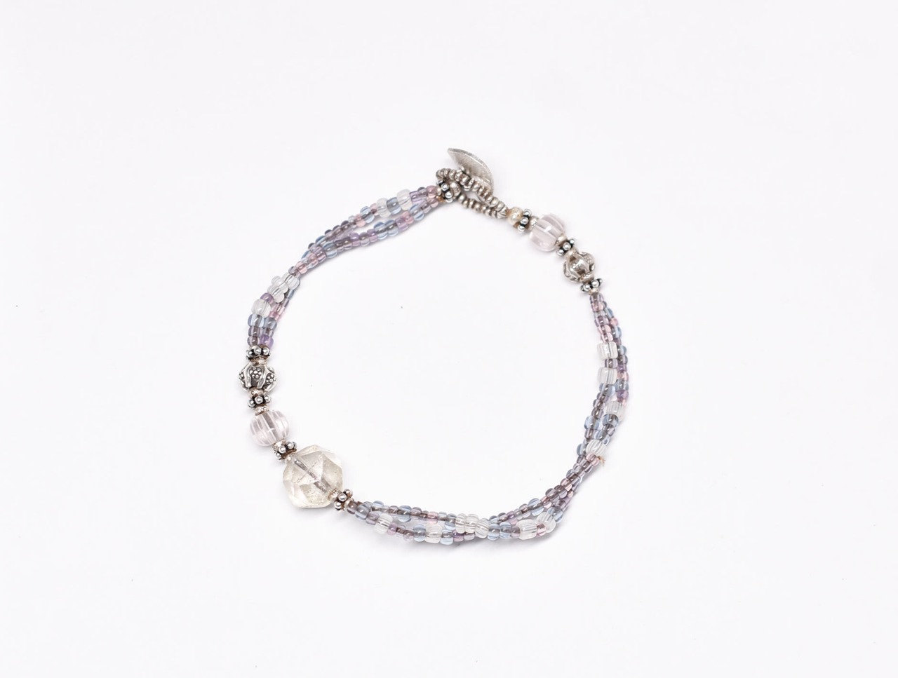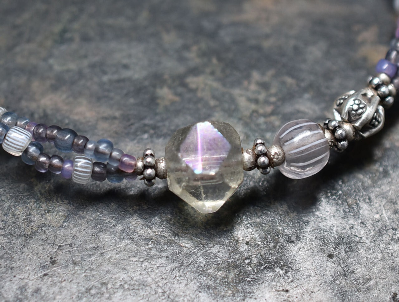 小さなパープルやピンクオパール、青藤色のビーズはフランスのヴィンテージビーズです。