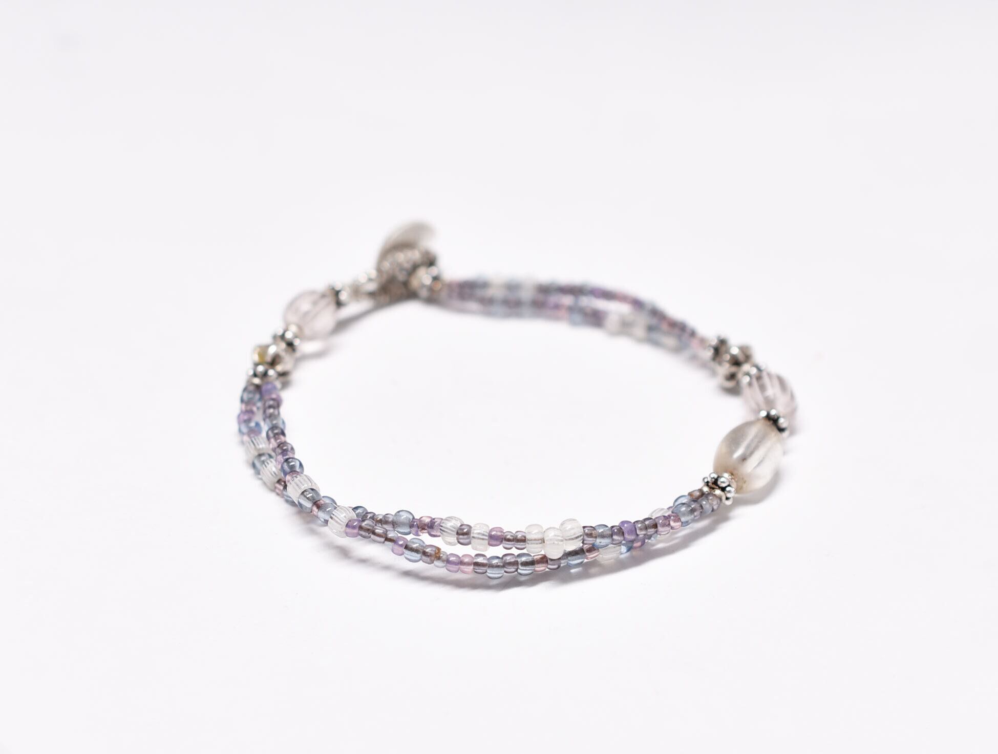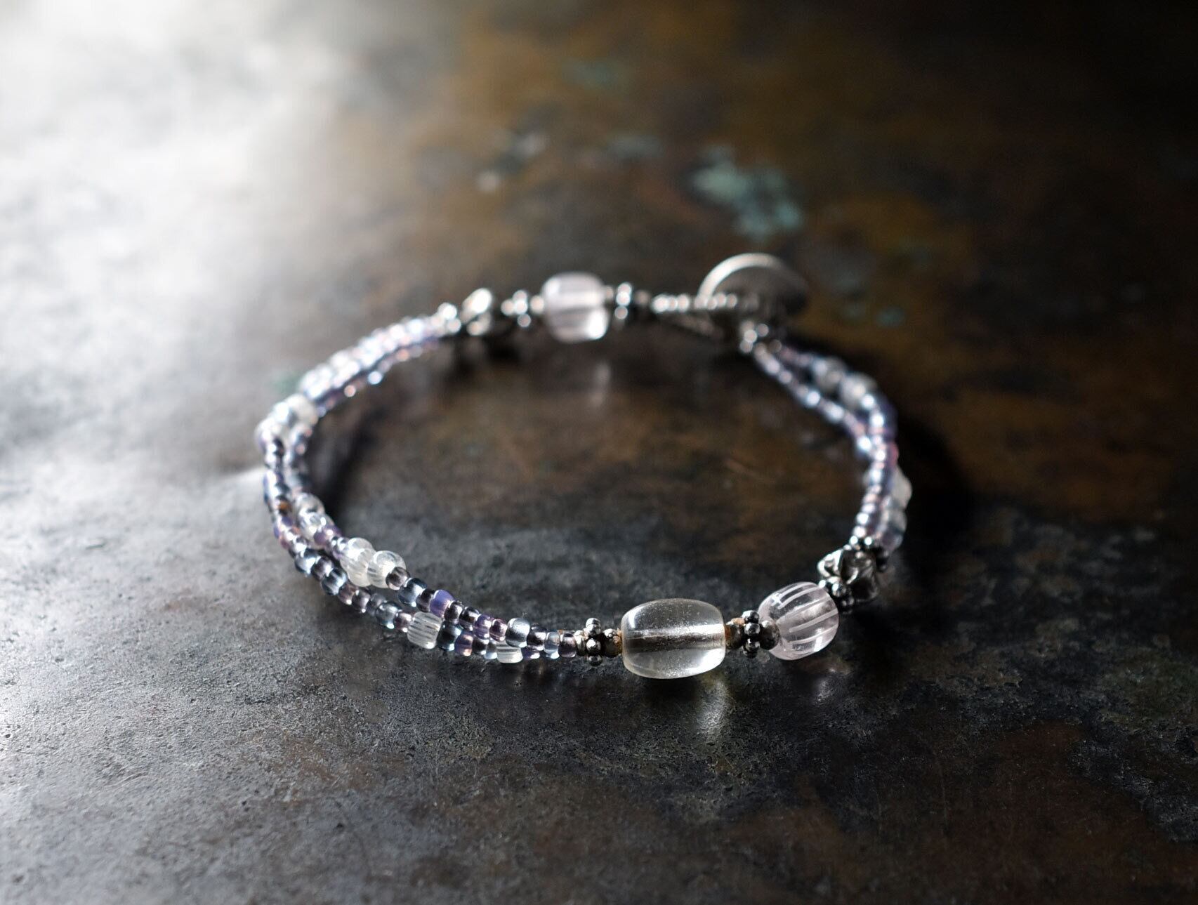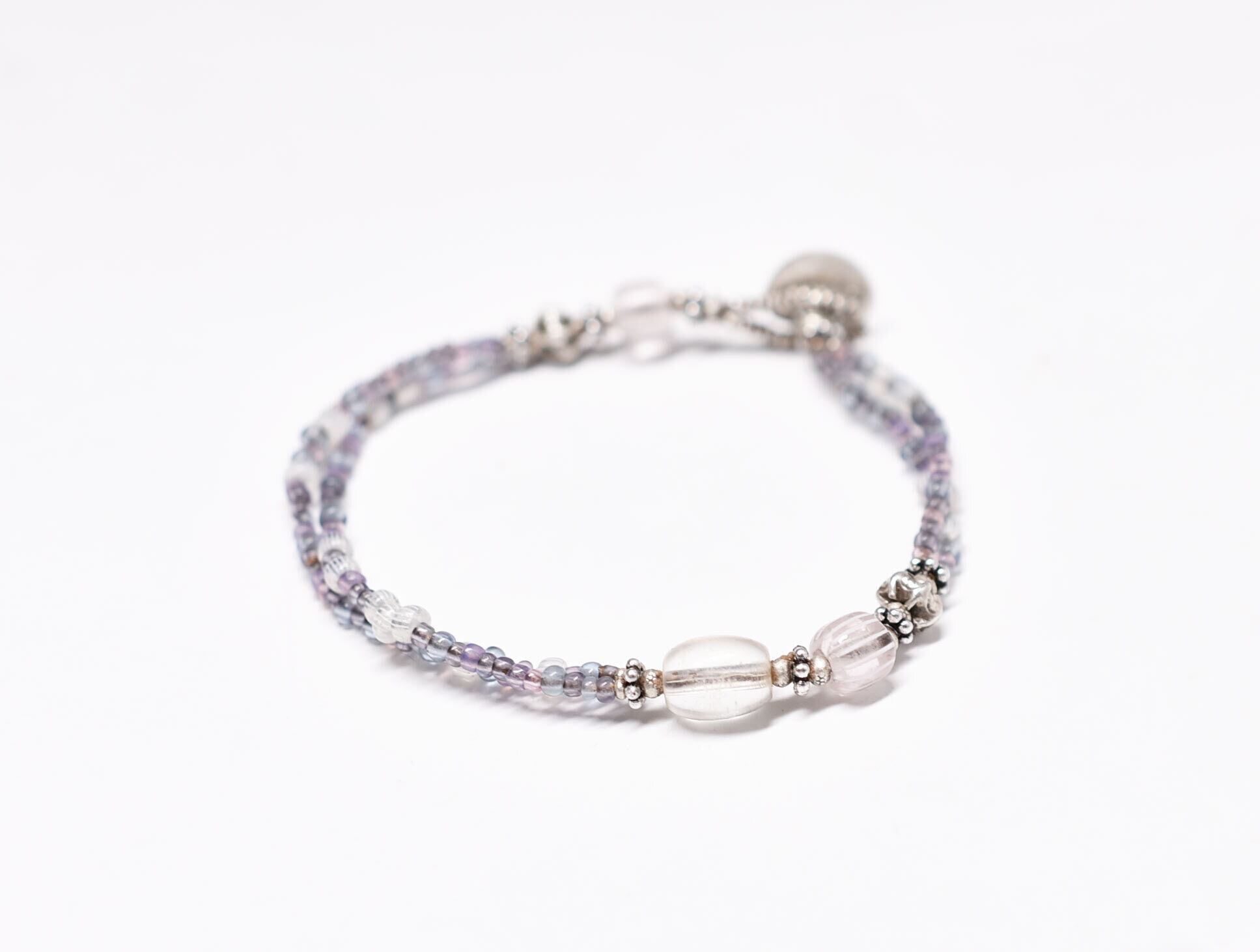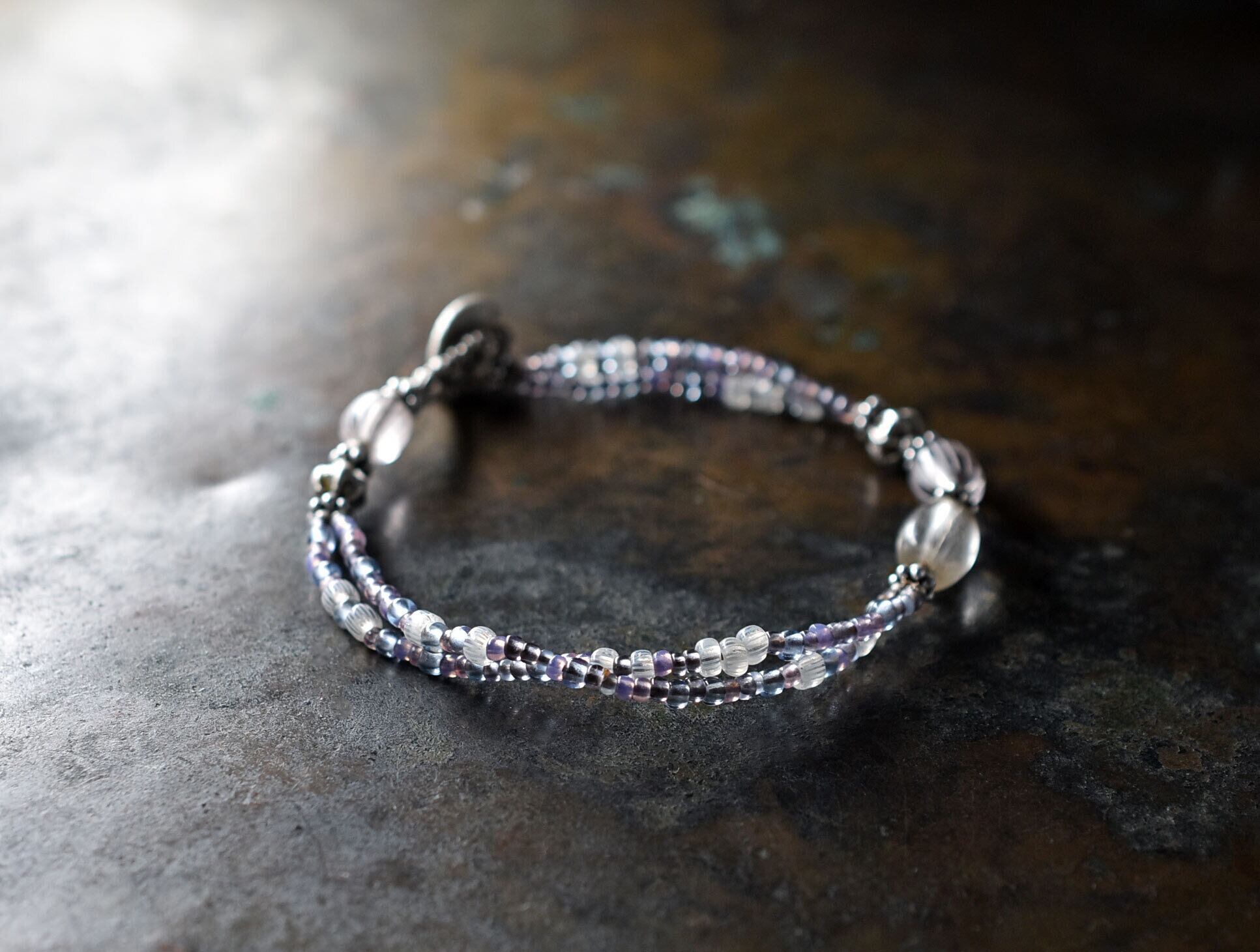 小さなパープルやピンクオパール、青藤色のビーズはフランスのヴィンテージビーズです。