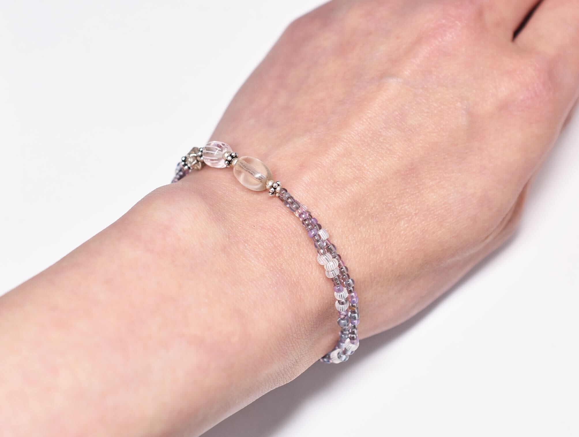 クリアボヘミアビーズを挟んでいる花形のビーズもシルバーです。