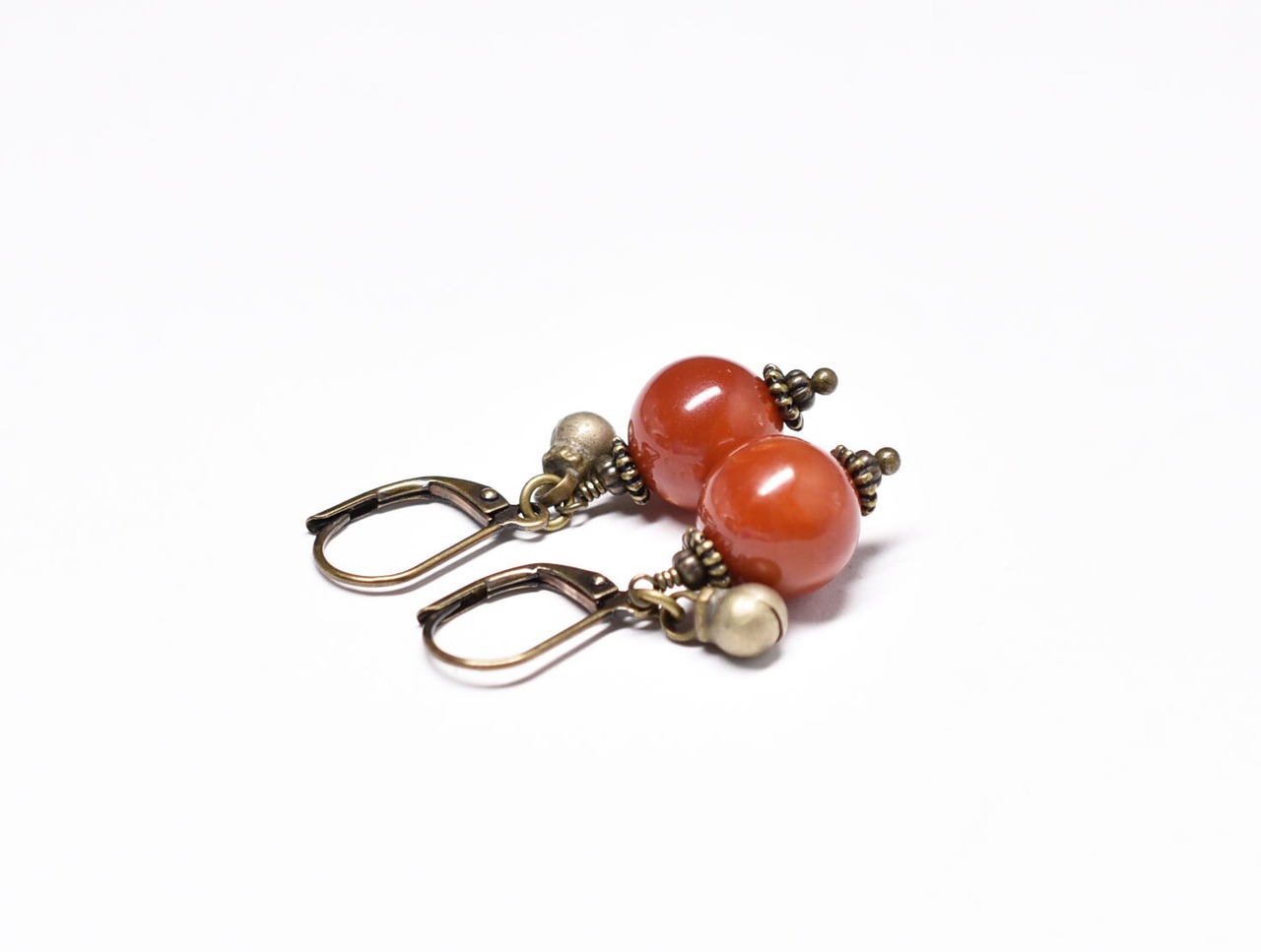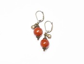 珊瑚色のまん丸なアフリカンアンバーと民族鈴を繋いだピアスです。