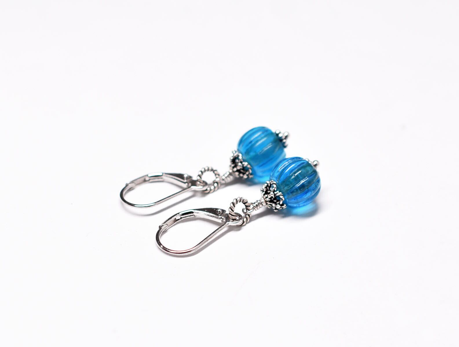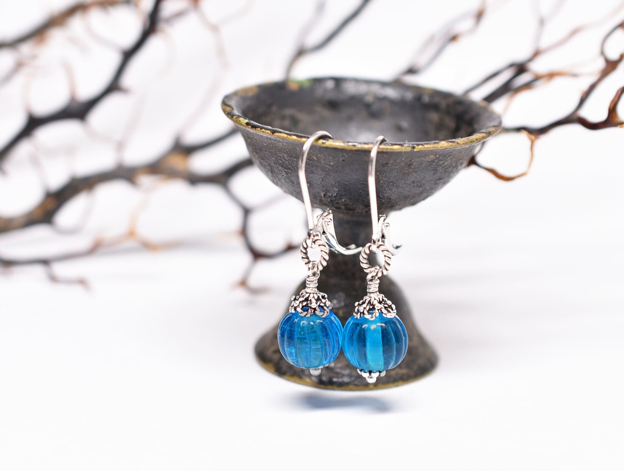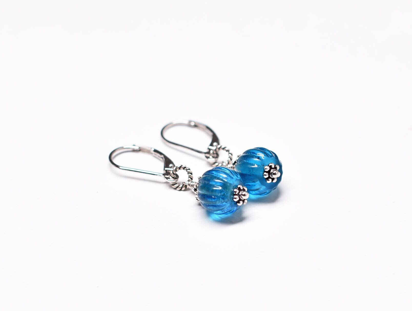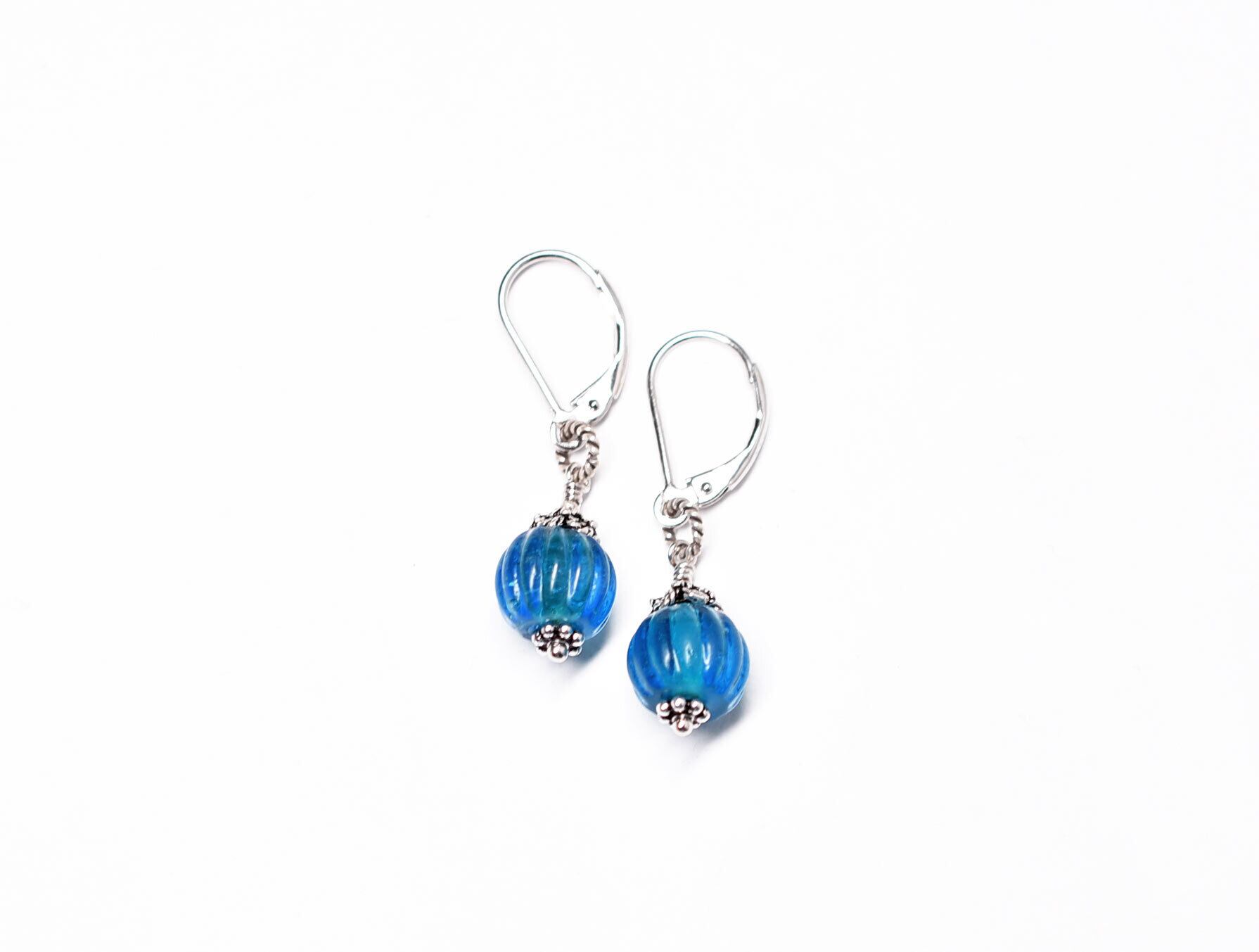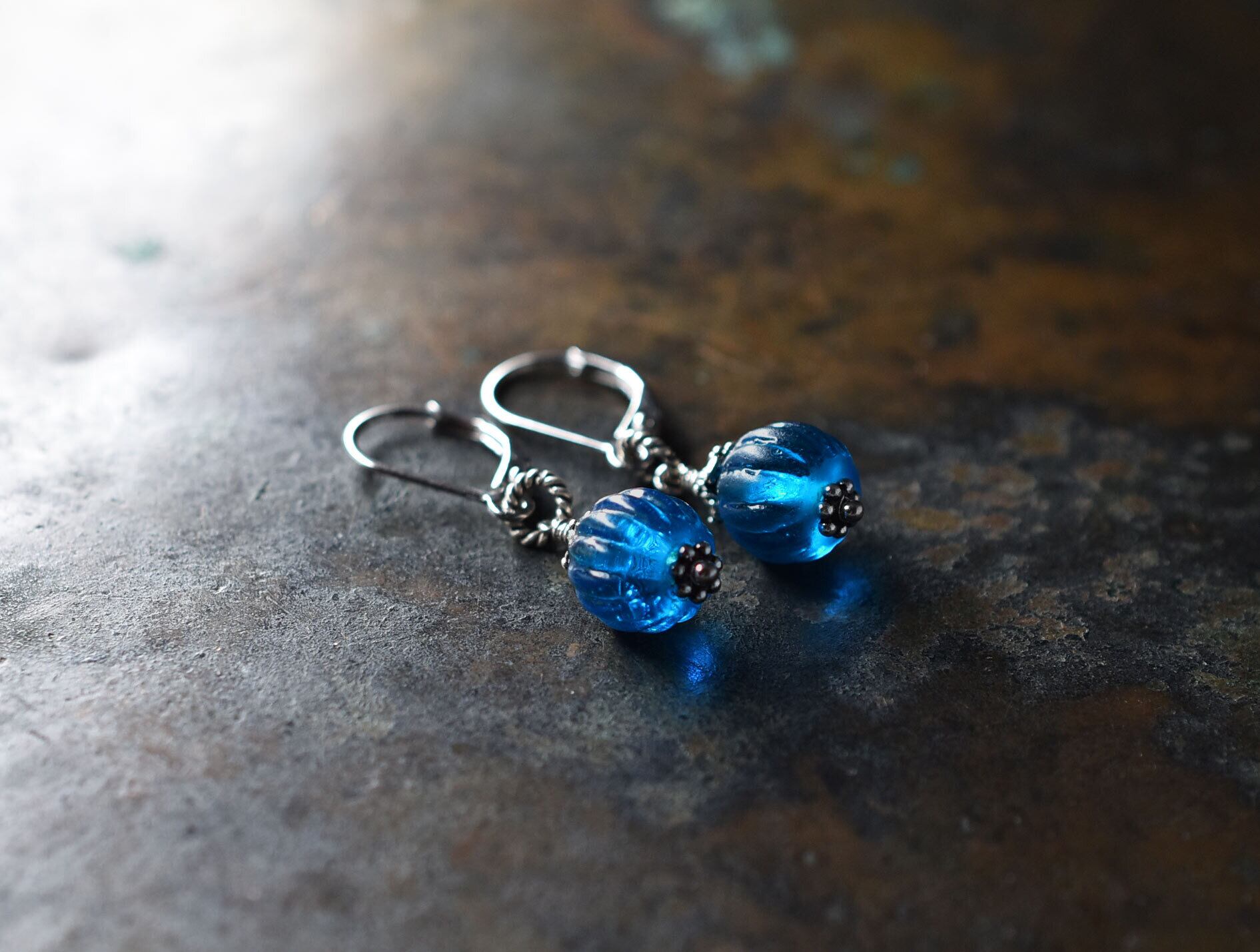 鮮やかなブルーがと古いガラスの味わいが楽しめる小さめなピアスです。