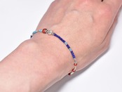 ラピスとターコイズブルーと金赤ホワイトハーツ 、カレンシルバーを繋いだ華奢なブレスです。