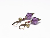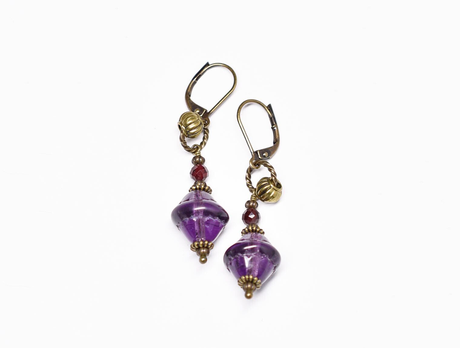 パープルドイツヴィンテージビーズとガーネットのピアス