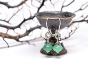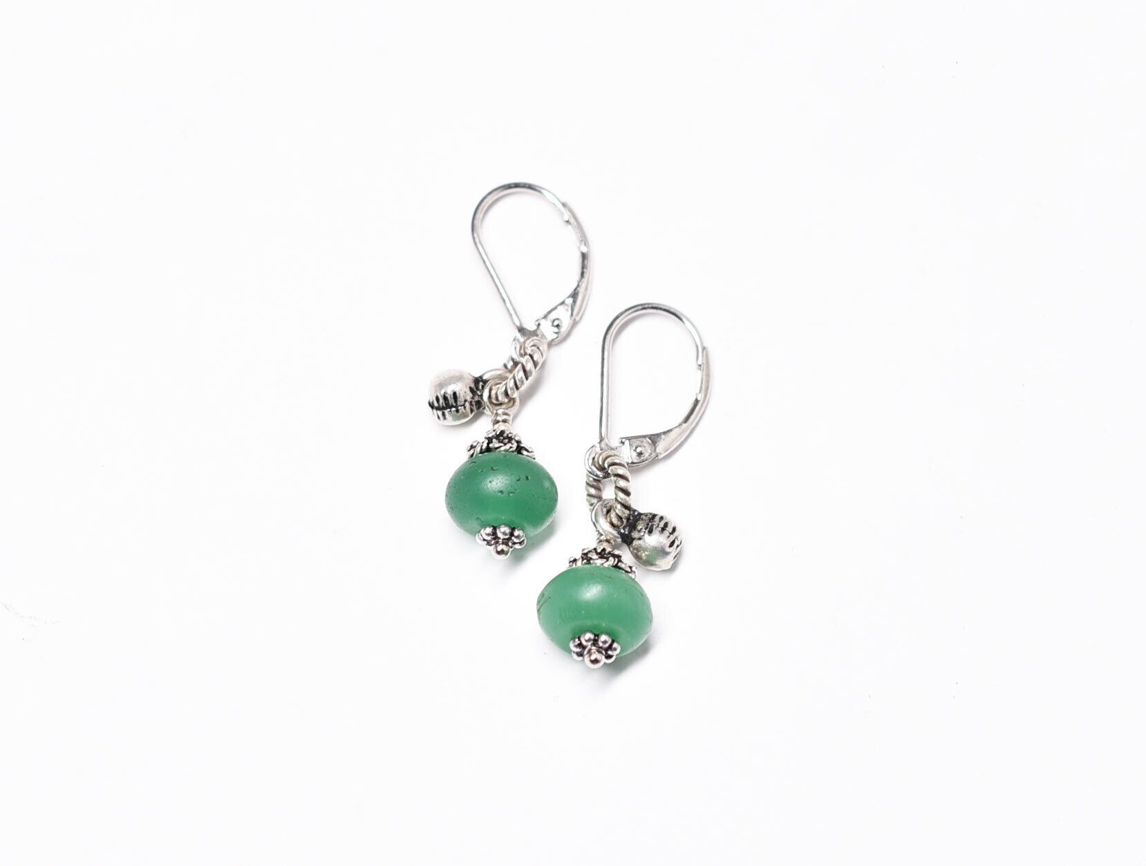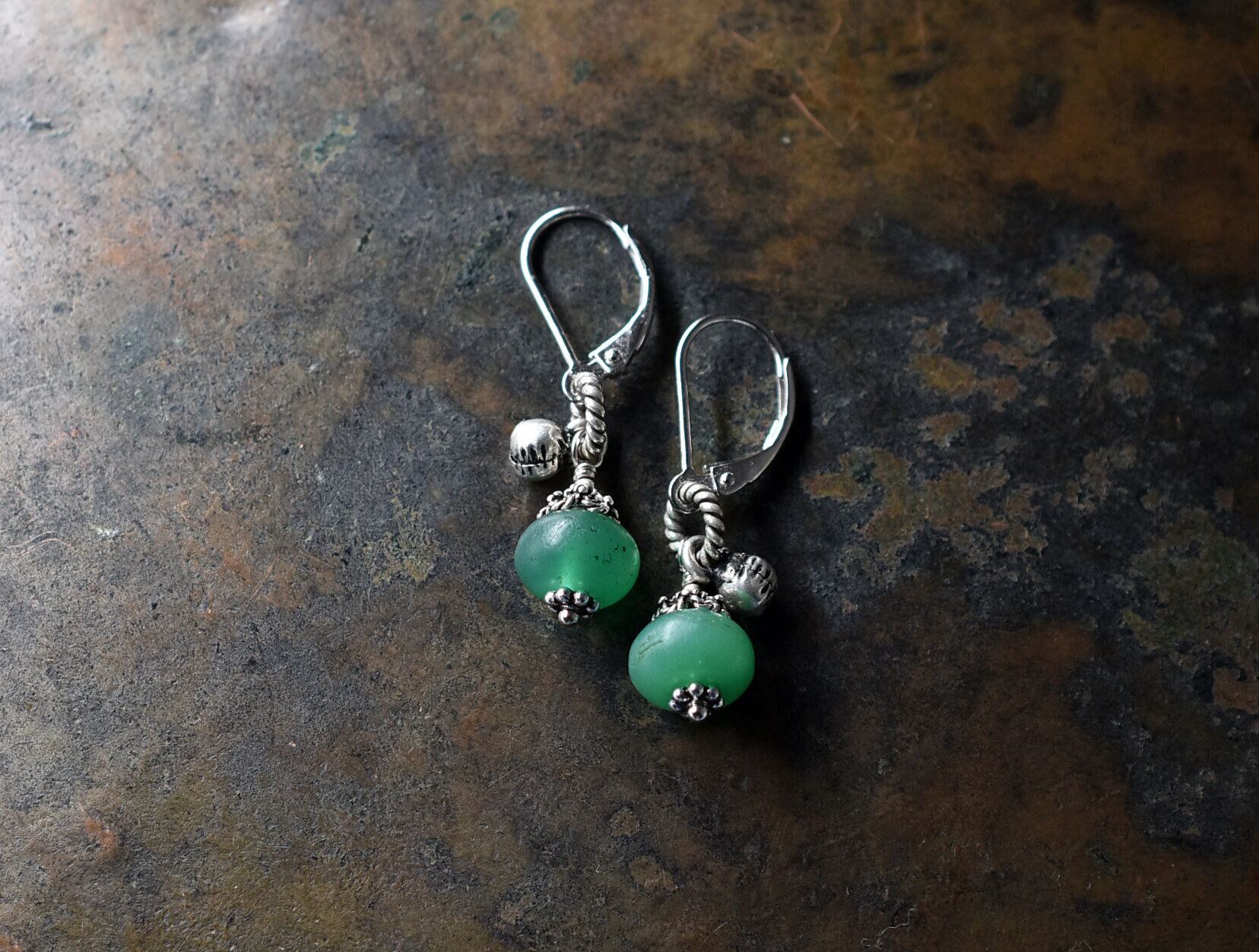 アンティークウランガラスとインドシルバー鈴を繋いだピアスです。