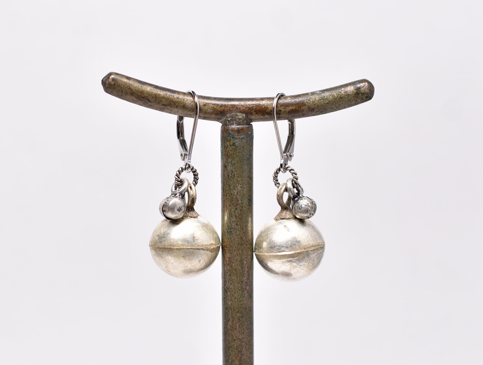 トン族まん丸パーツとインドシルバーの鈴のピアス