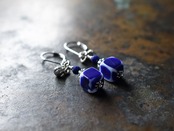 濃紺スクエアアンティークボヘミアビーズとラピス、インドシルバー鈴を繋いだピアスです。