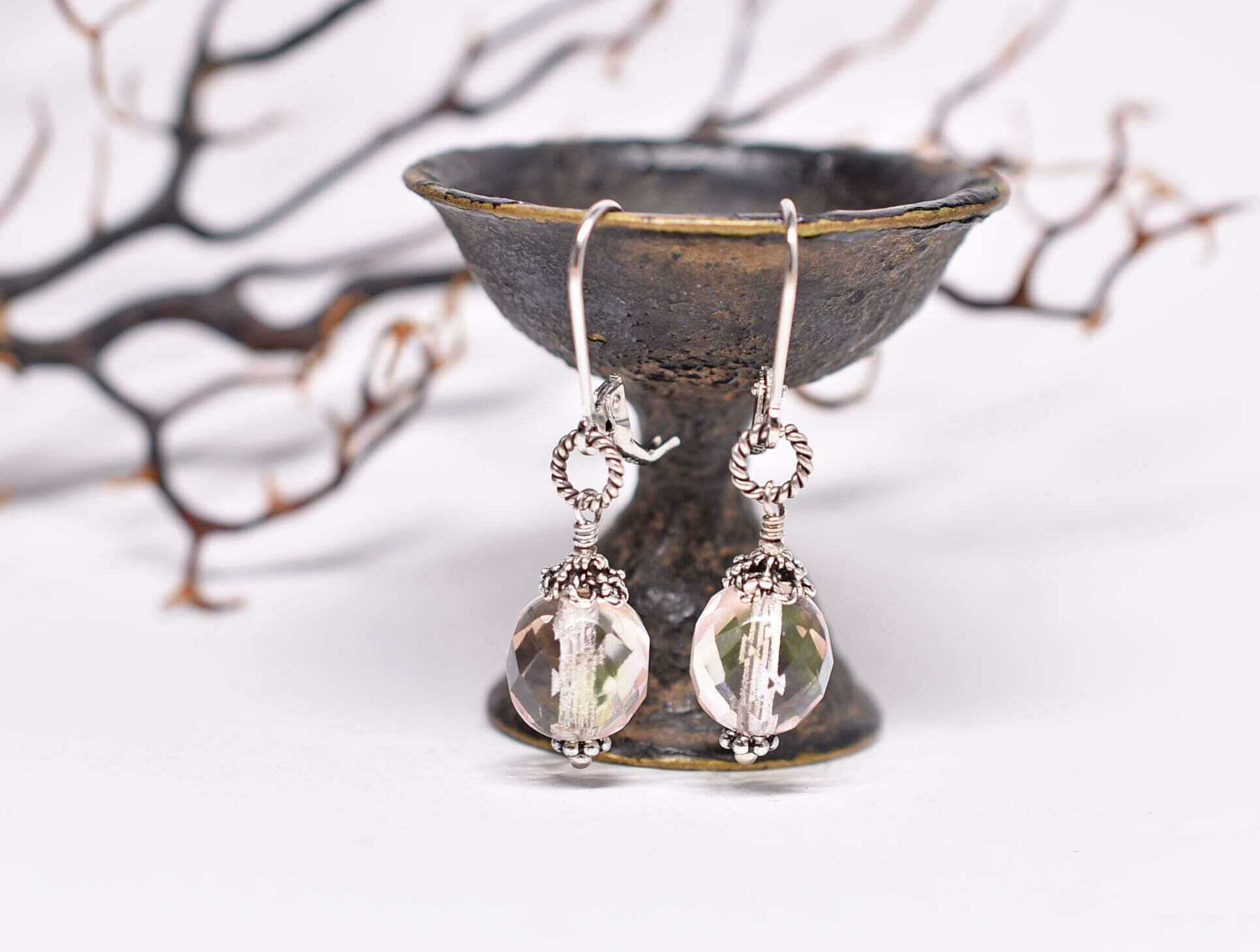 淡く儚げな色合いの中に、芯の強い光湛えたピアスです。