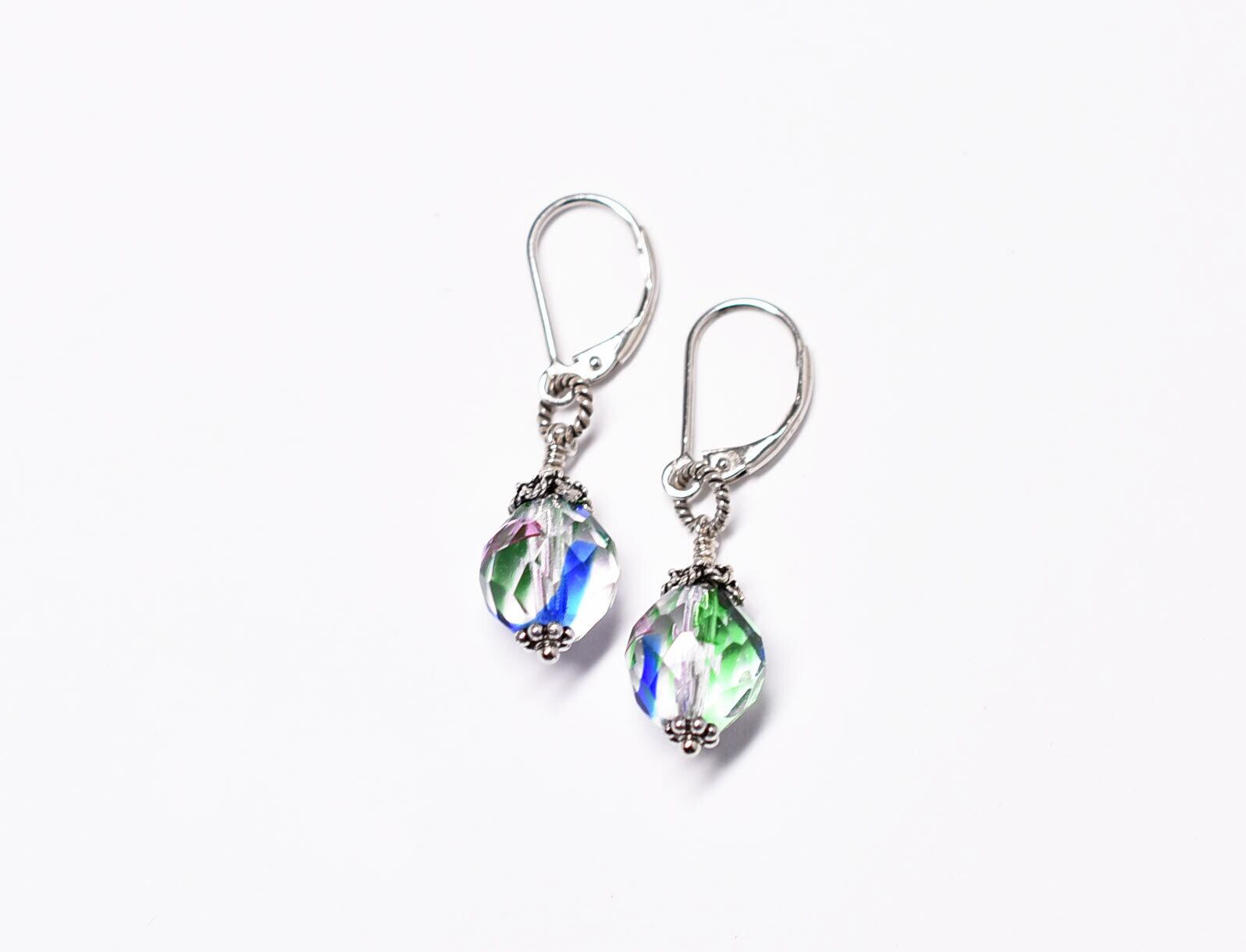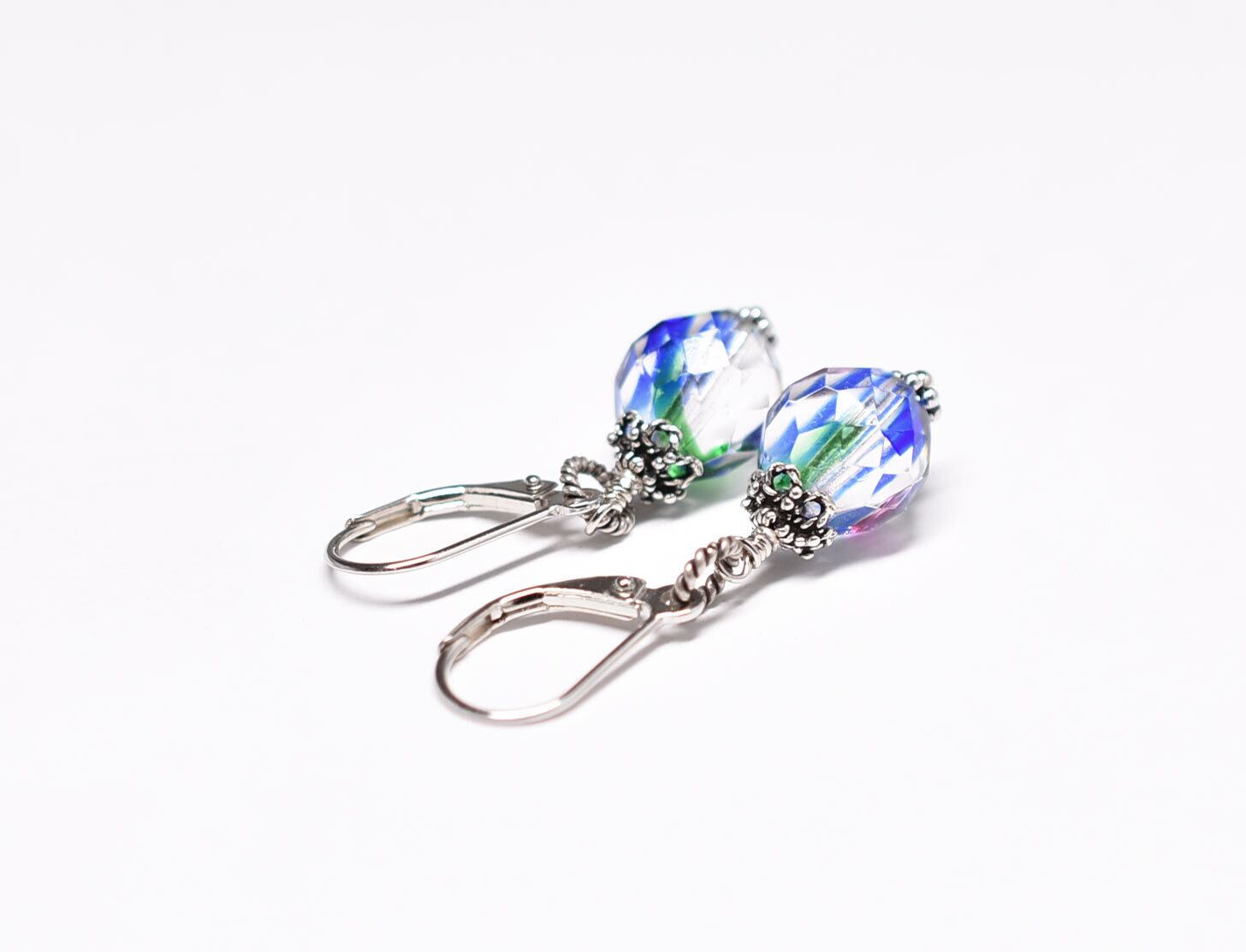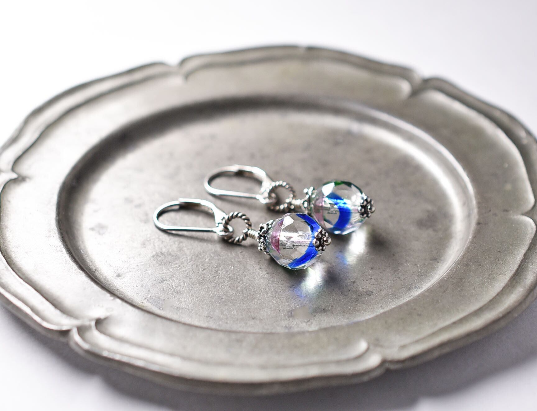 アイリスガラスと呼ばれるチェコ産のアンティークビーズのピアスです。