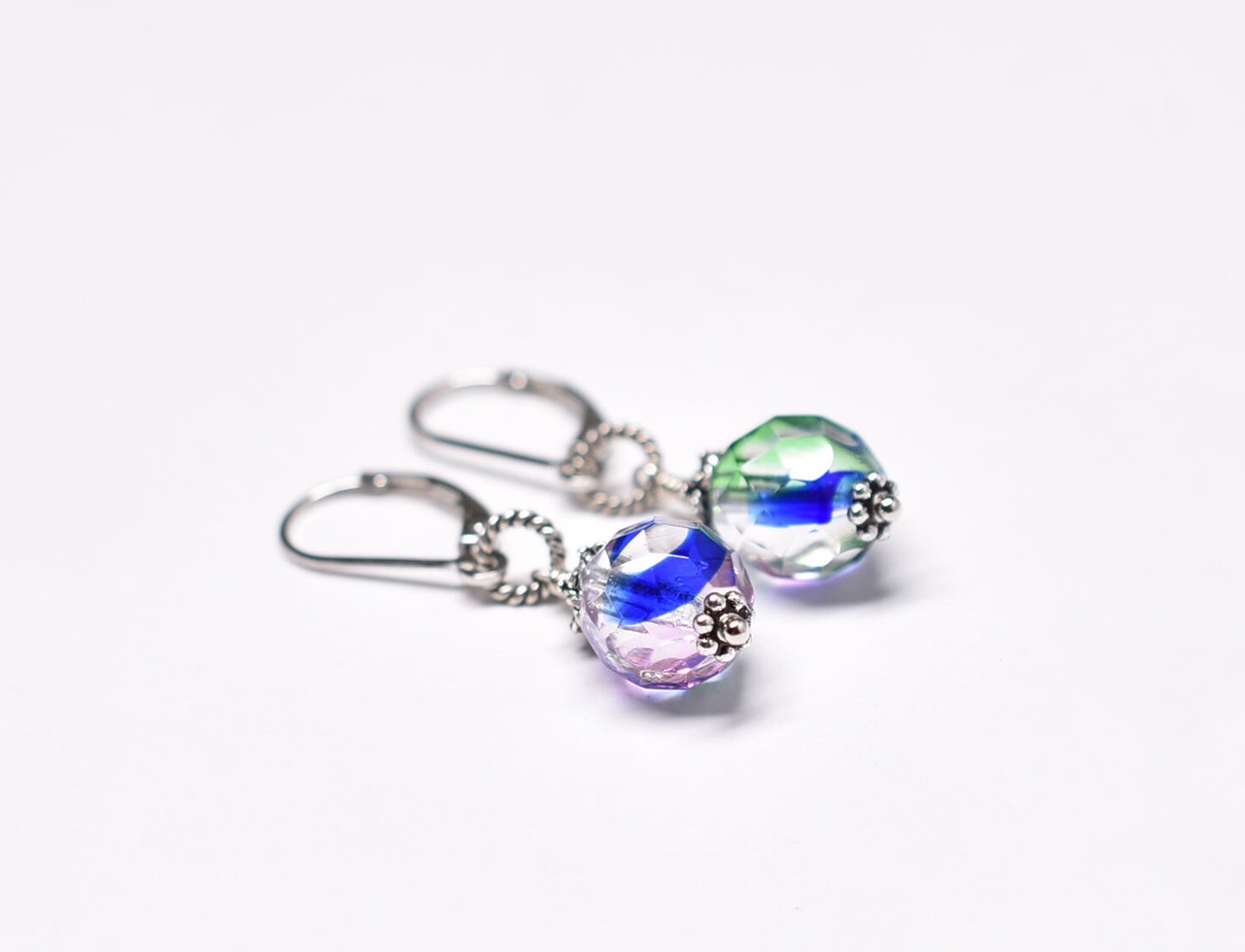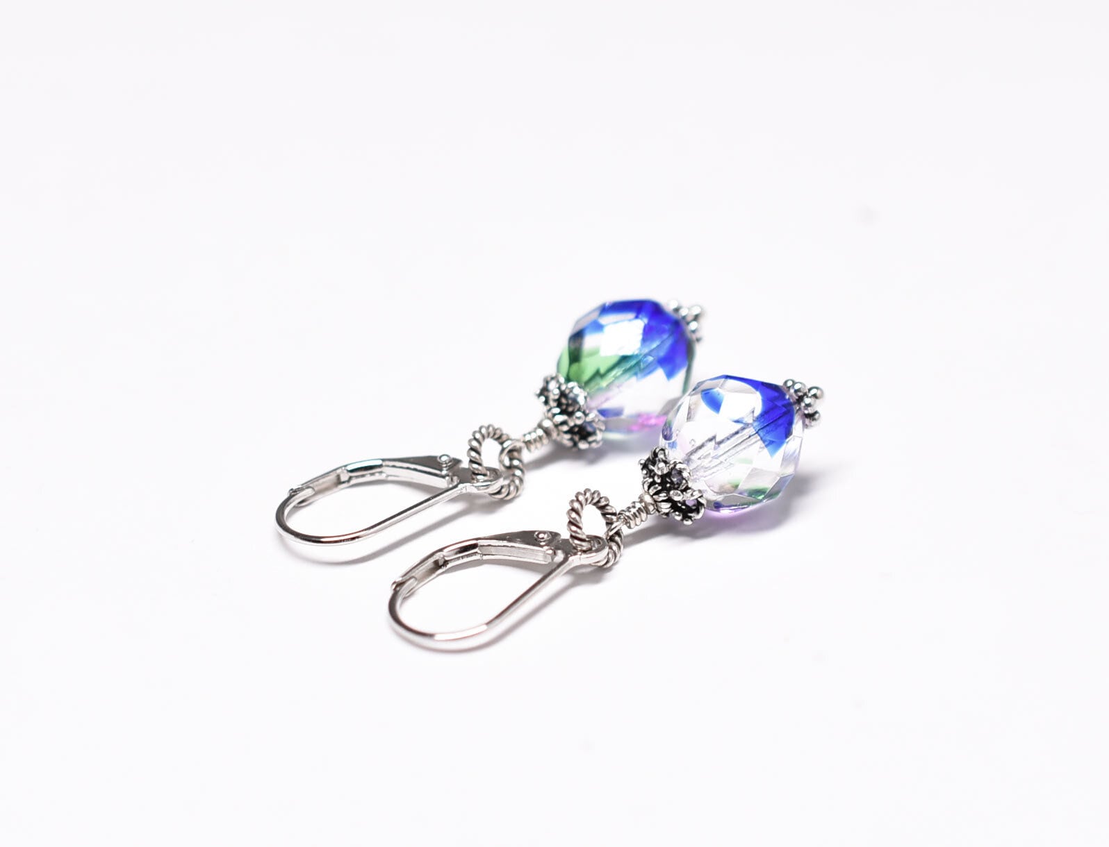 アイリスガラスと呼ばれるチェコ産のアンティークビーズのピアスです。