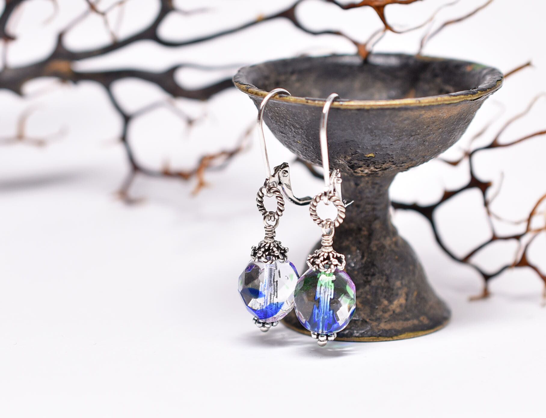 ヴィンテージアイリスガラスのシンプルピアス(ブルー多め)