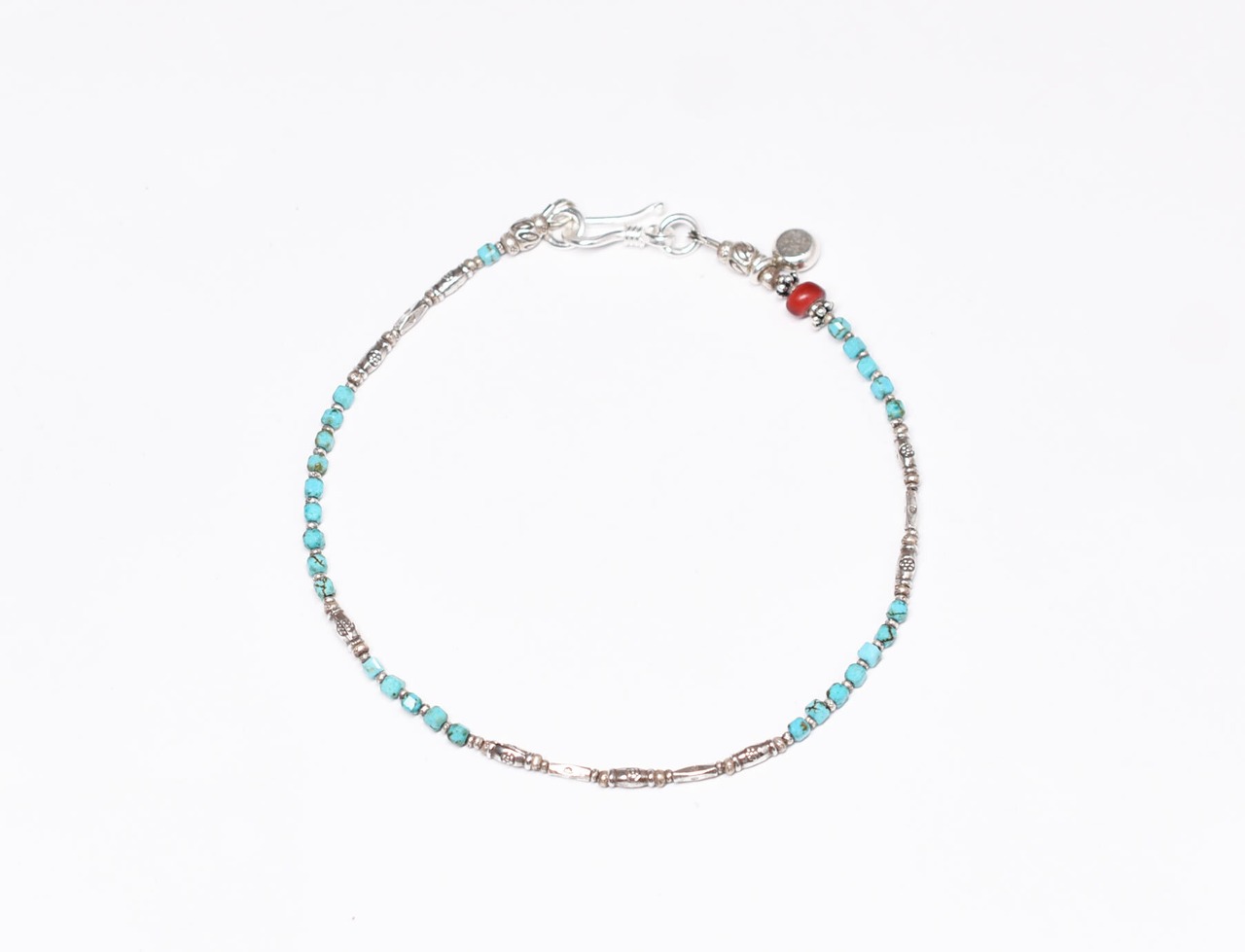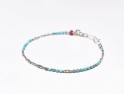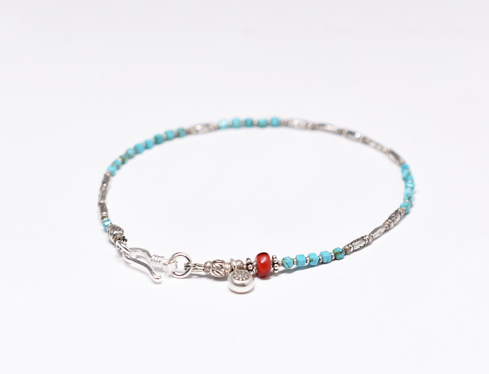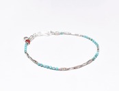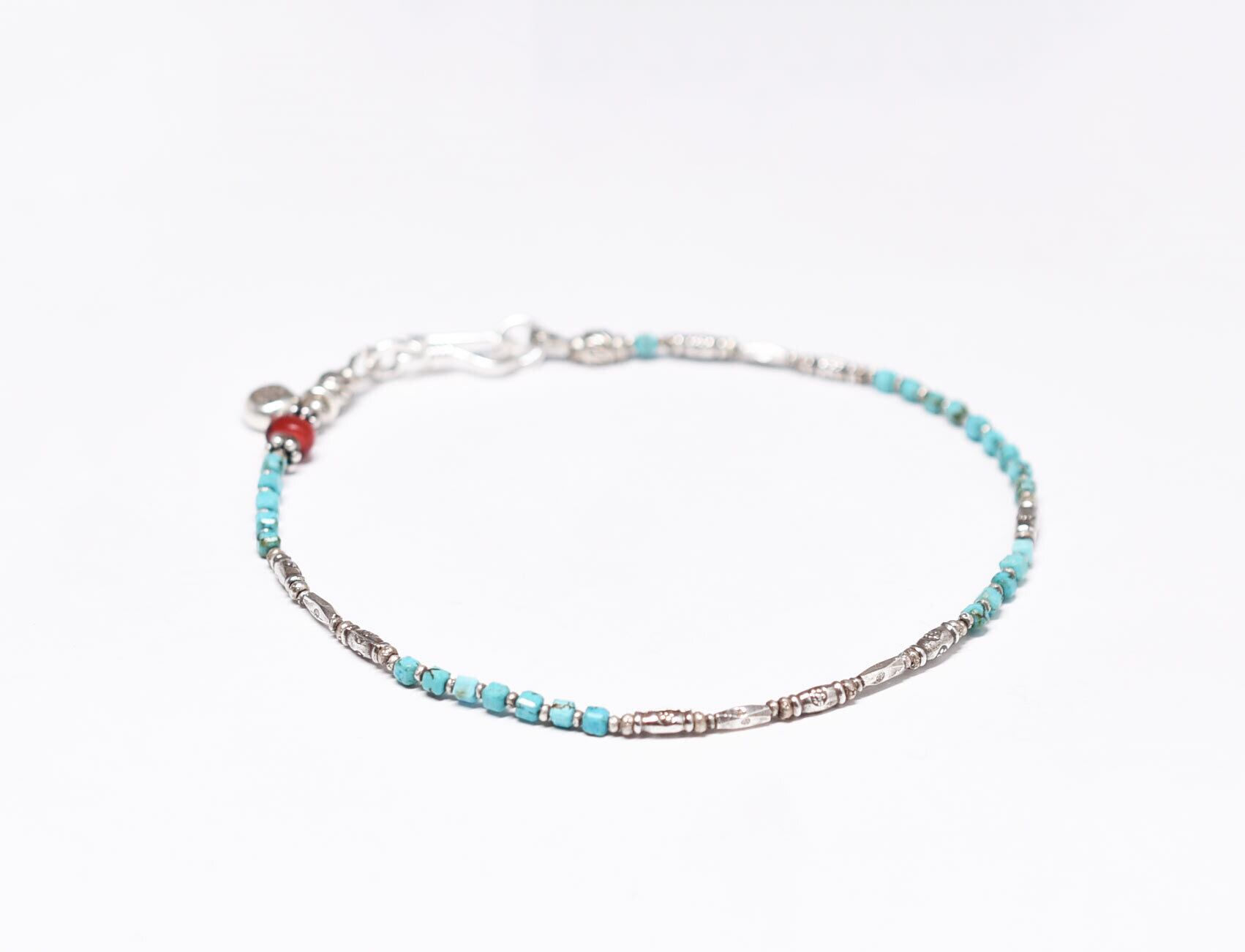 スクエアターコイズとカレンシルバー、金赤ホワイトハーツを繋いだ華奢なアンクレットです。