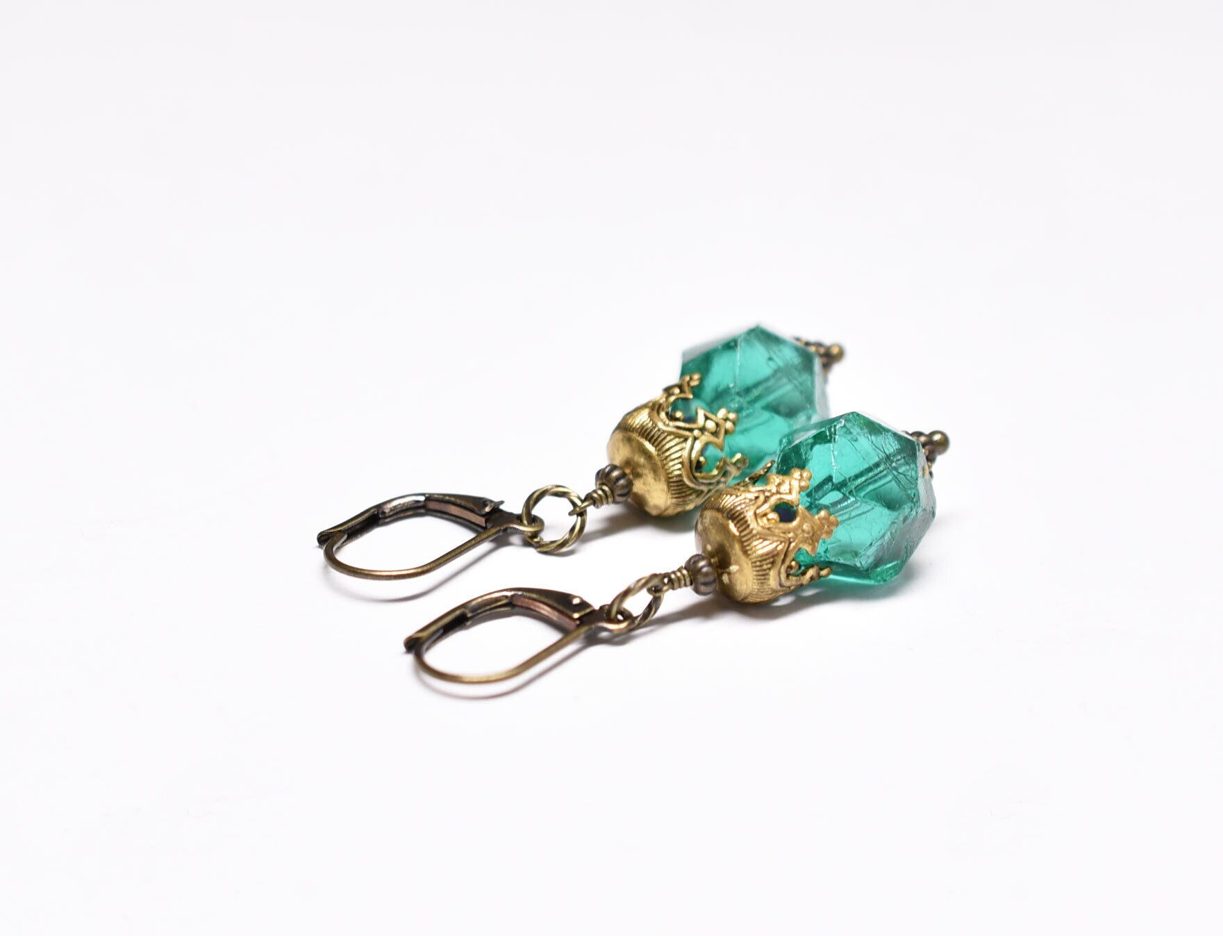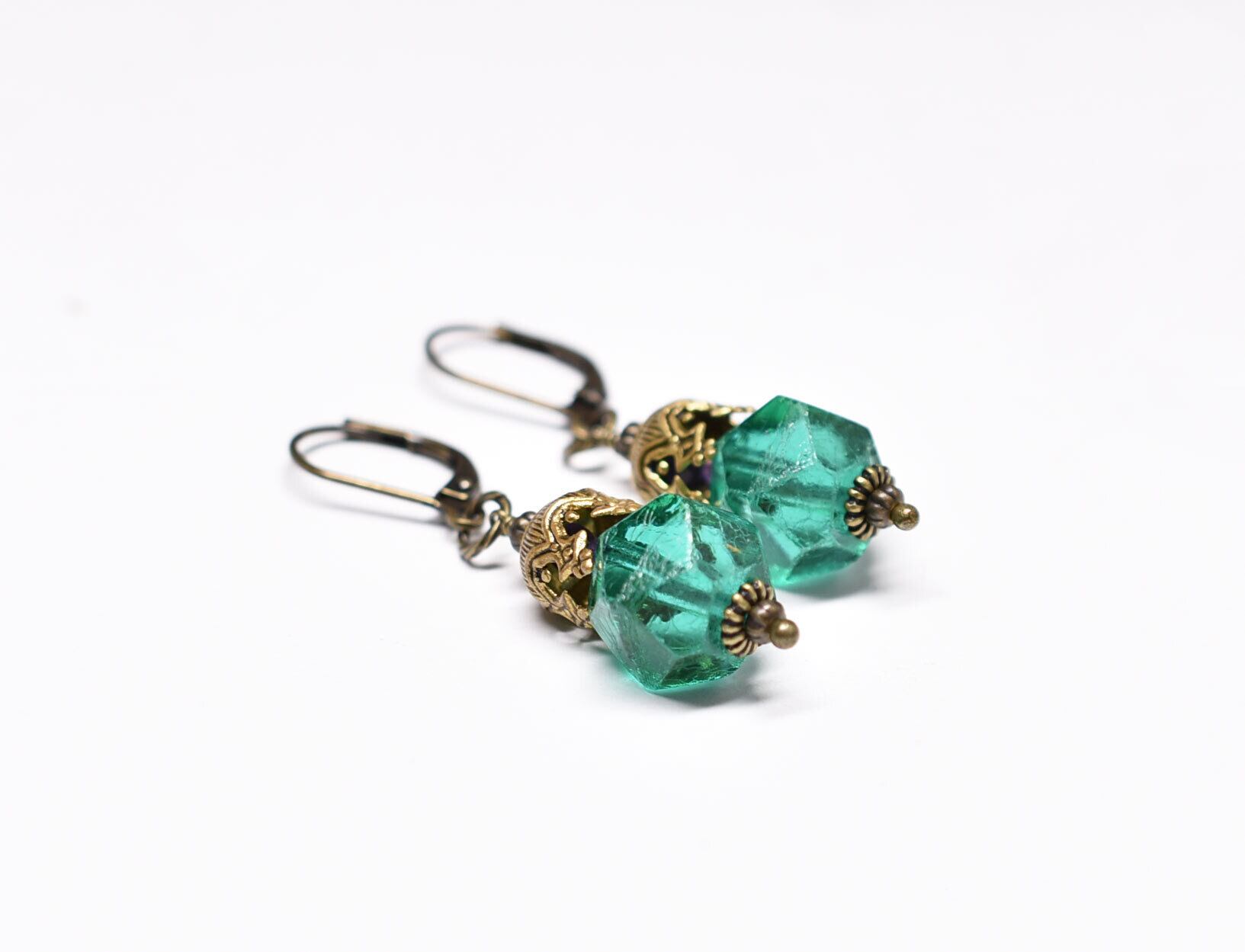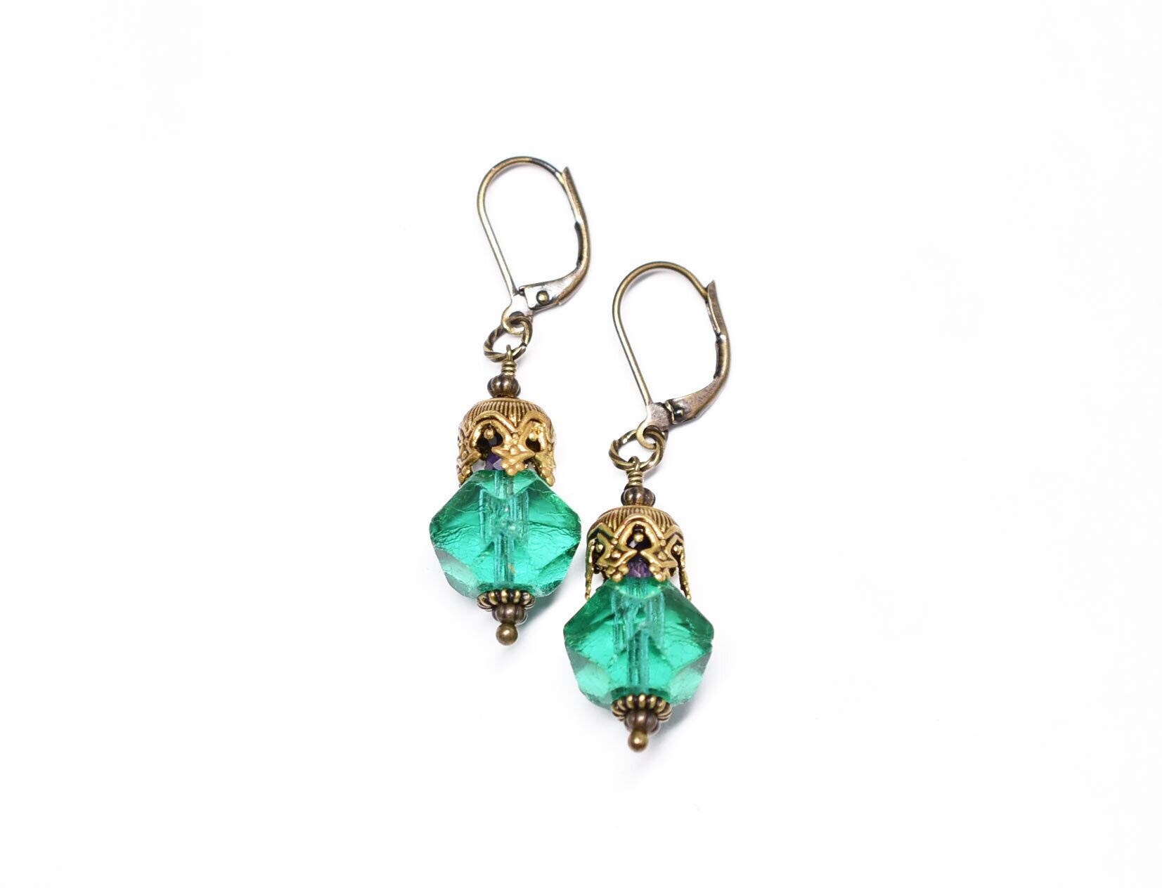 美しいグリーンのビーズは1930年代のチェコのビーズです。