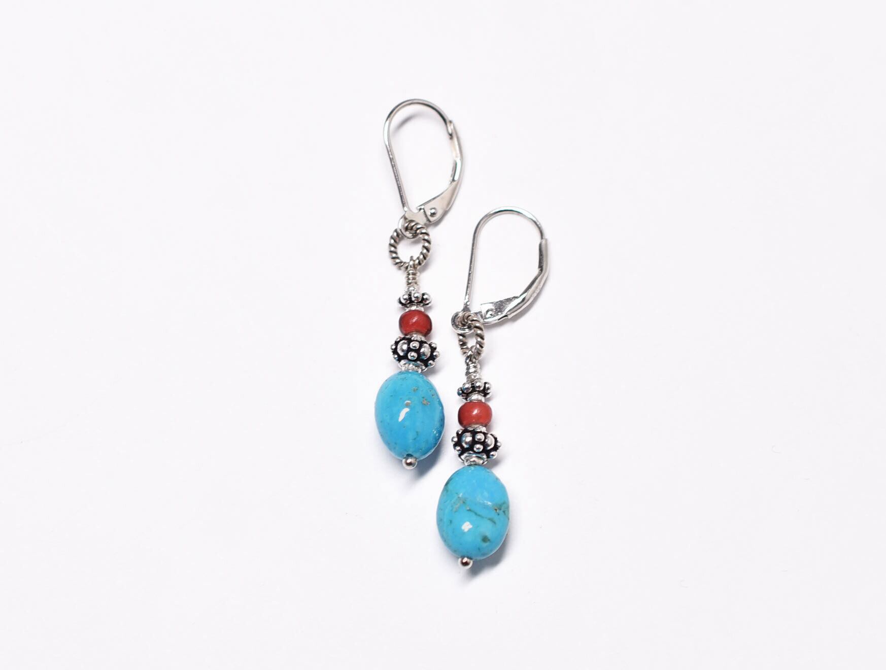 明るめな空色のビーズはキングマンターコイズです。とても発色が良く、優しい色合いです。