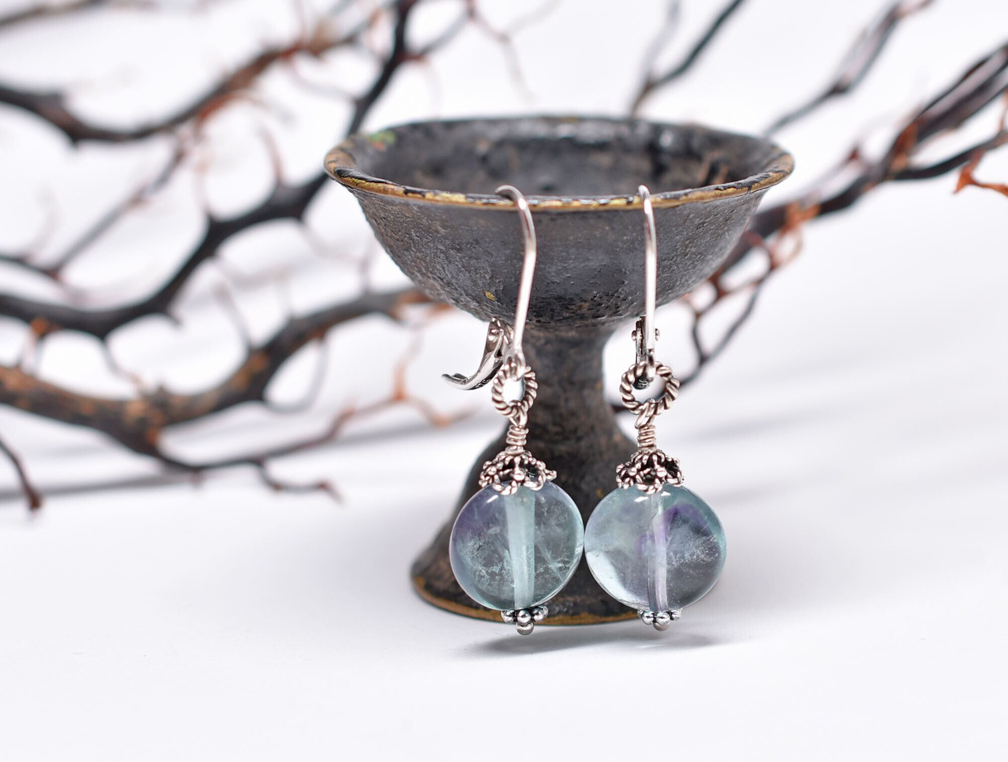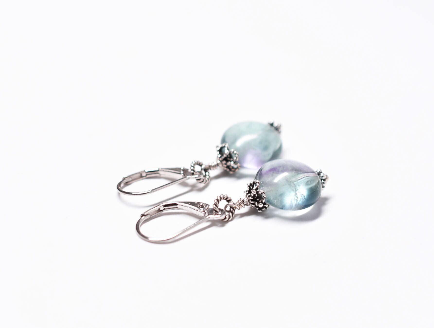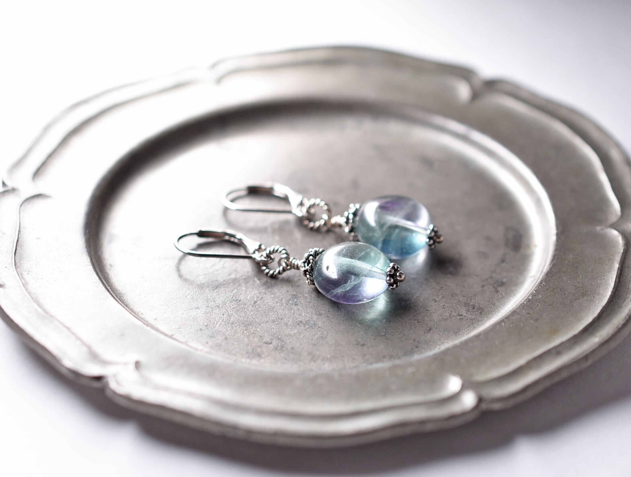 淡いブルーグリーンフローライトを繋いだ一粒ピアスです。