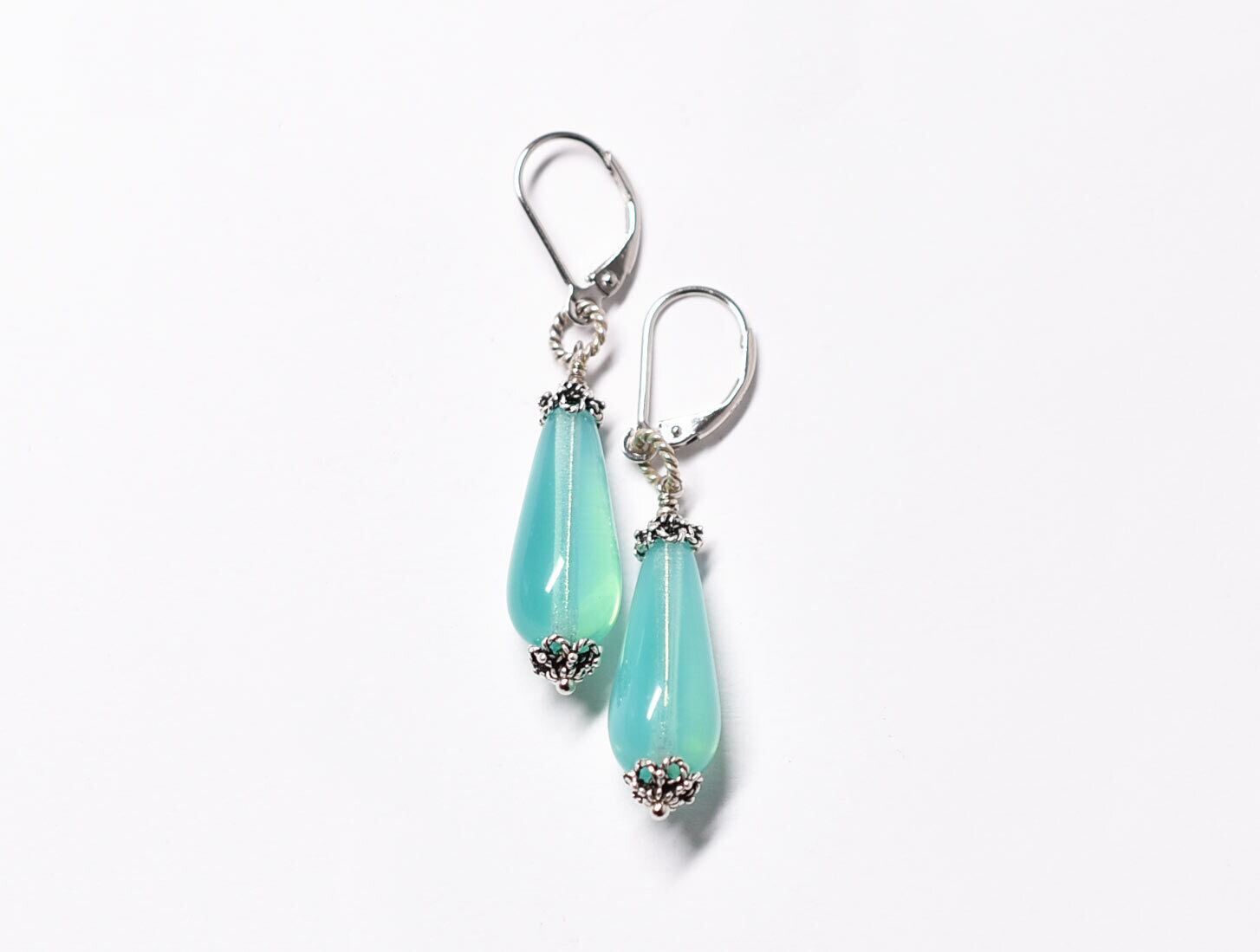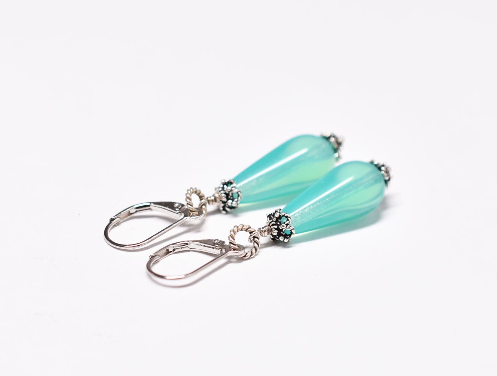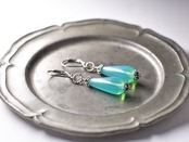 雫型ピーコックグリーンウランガラスの一粒ピアス