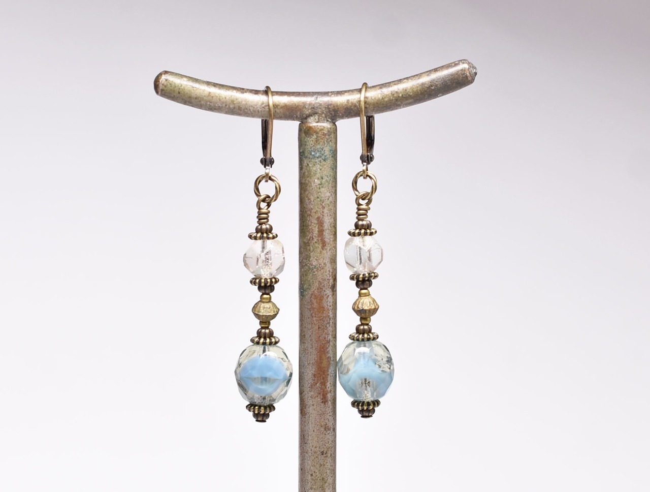 チェコヴィンテージビーズとオーロラビーズ、ブラスビーズのピアス