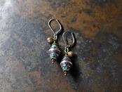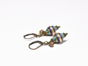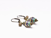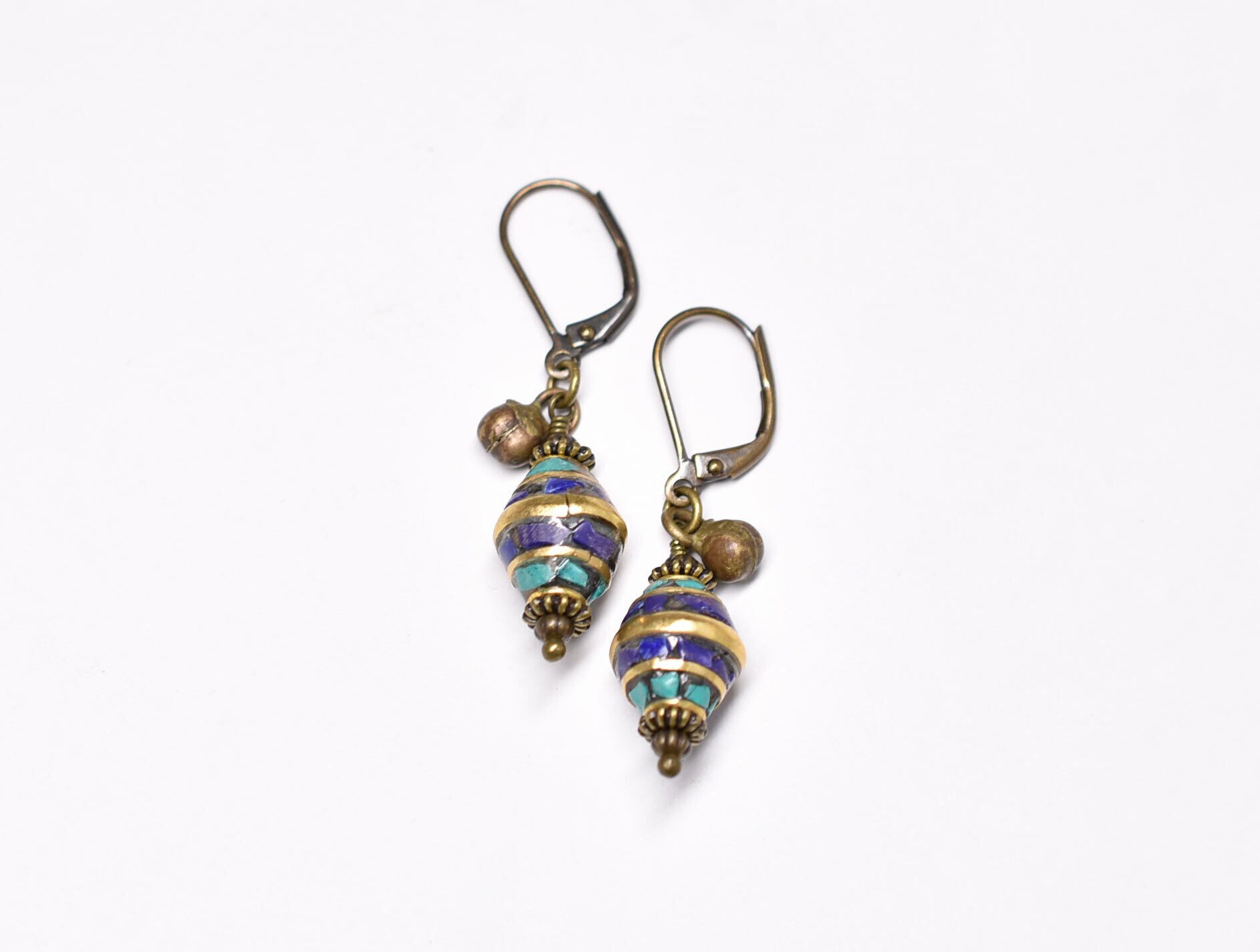 ラピスとターコイズ象嵌チベットビーズと民族鈴のピアス(スリム)