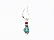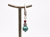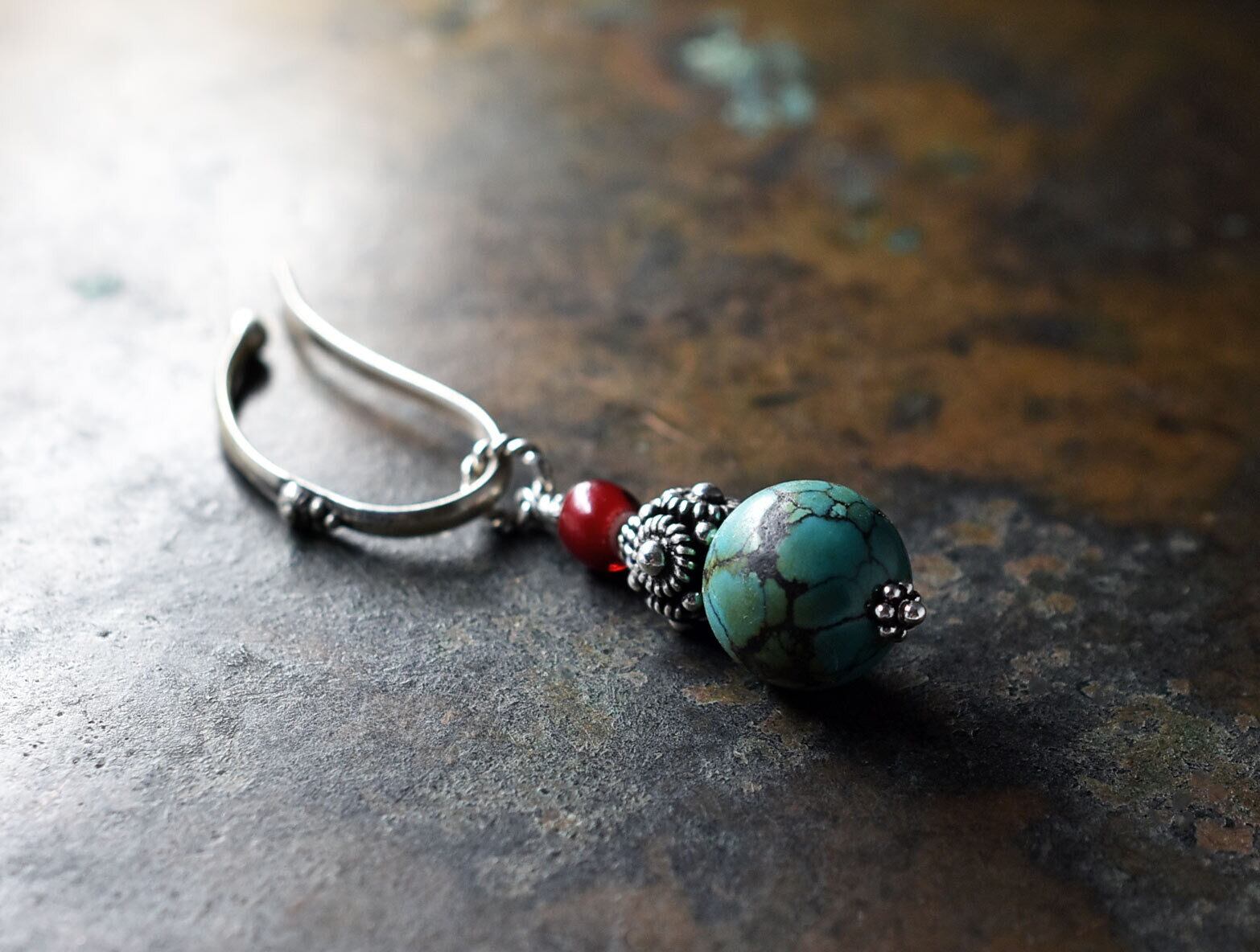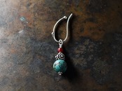 まん丸チベタンターコイズと繊細細工シルバービーズ、血赤ホワイトハーツ、インドシルバーのイヤーカフ