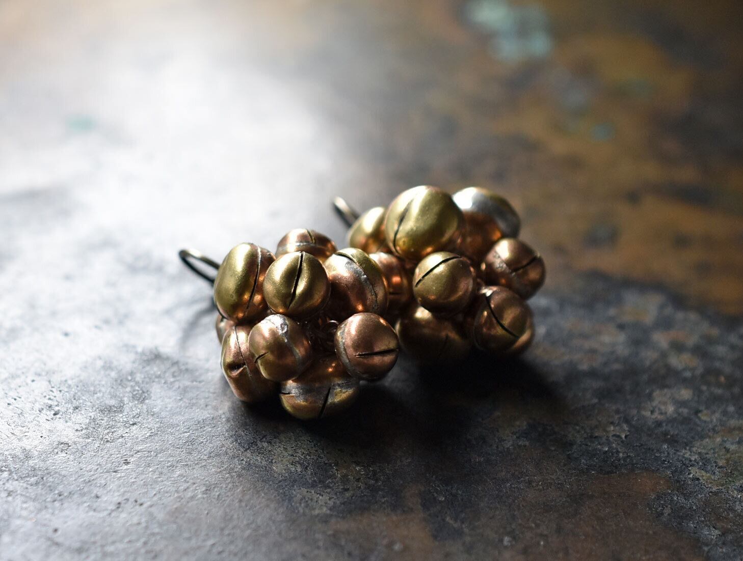 たわわな鈴のポンポンピアス(アンティークゴールドカラー)