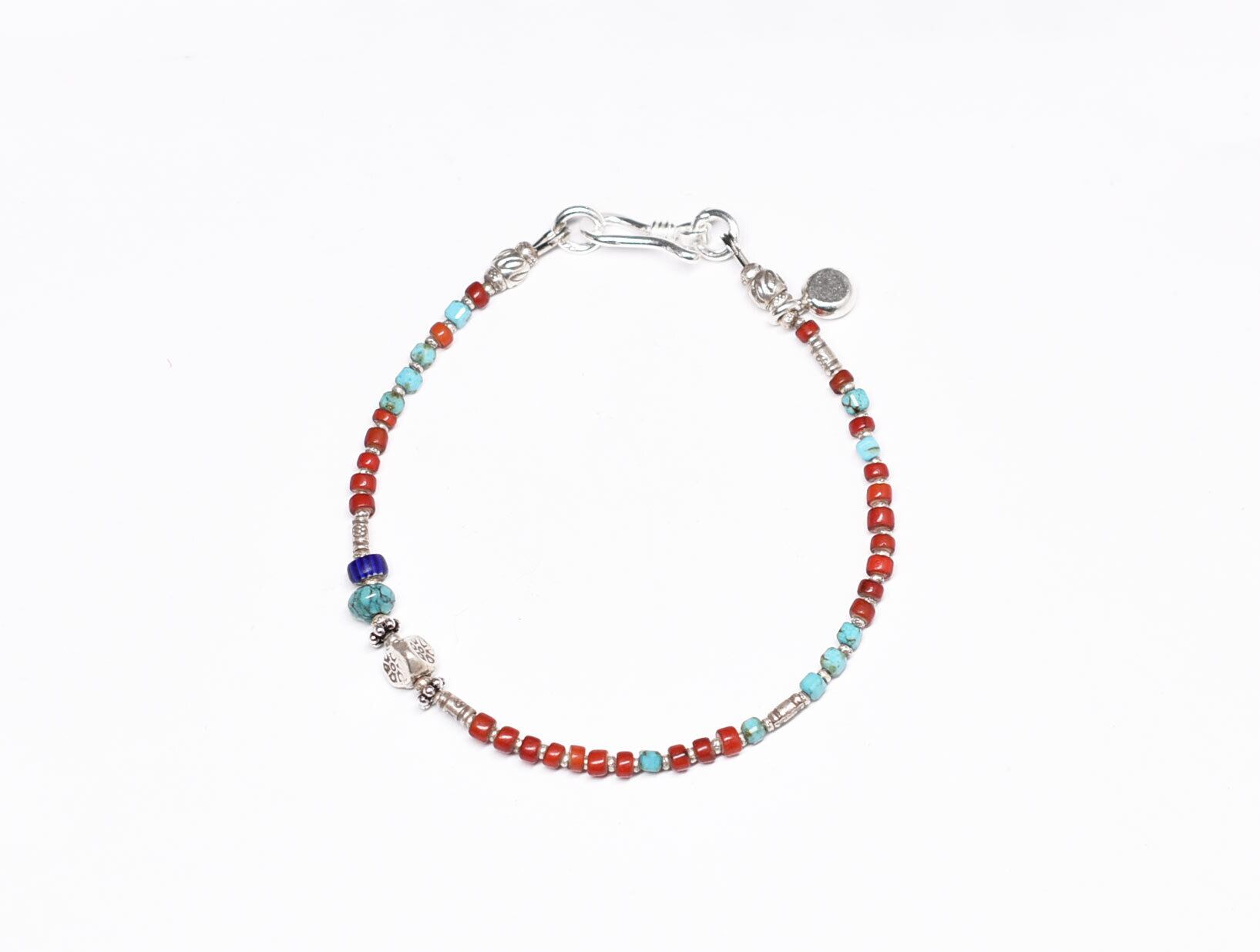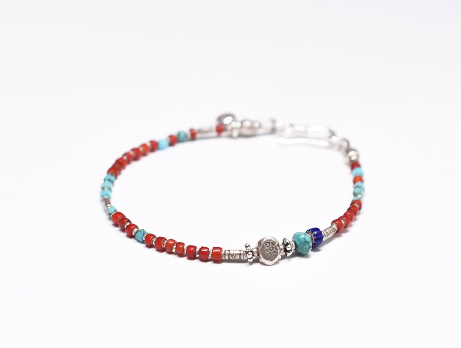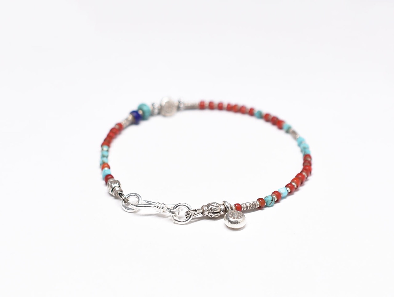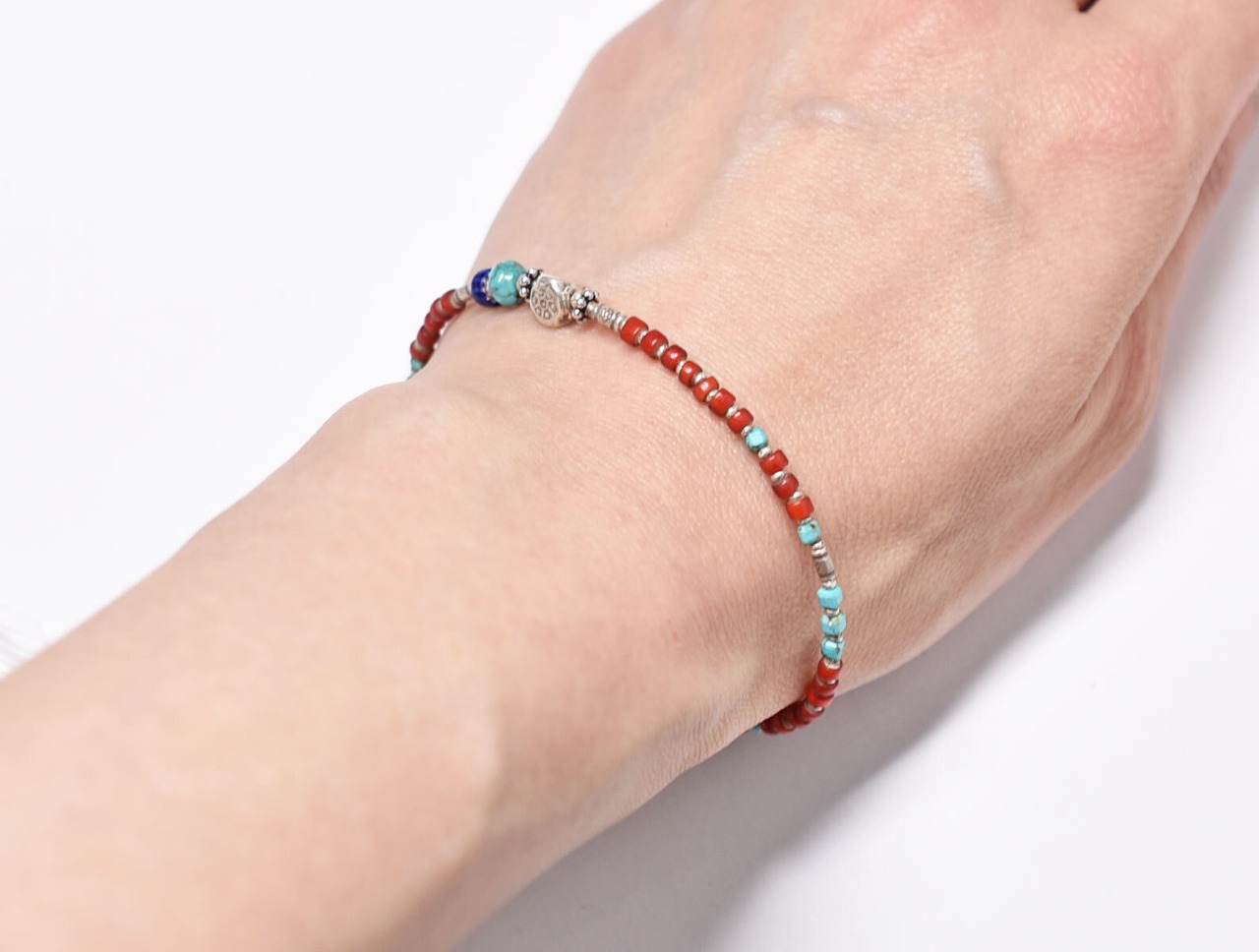 カレンシルバーとブルーシェブロン、ターコイズと飴色ホワイトハーツを繋いだ華奢なブレスです。